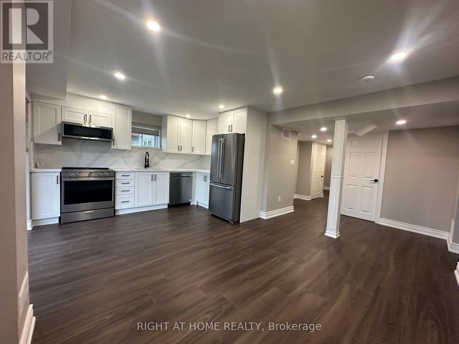 Shellard lane & Anderson rd Fall in love w this charming legal Walkout 2 bedrooms +den apartment. Practically 3 rooms. Sep side entrance. Five Star finishing, very bright & warm 2 decent-sized bedrooms + an enclosed den w a window (can be used as a 3rd room). Carpet-free quality vinyl flooring. Open concept w High-end quality finishes: custom blinds, dimming LED spotlights. Modern spacious white kitchen w plenty of cabinets & quartz countertop space, soft closing drawers and cabinets,quartz backsplash!! High-end SS appls (DD fridge, dishwasher, b/I microwave & electric stove).3 pcs spa-like bath w spacious standing glass shower, heated mirror w B/I lead light. Private laundry w large capacity washer & dryer. 1 designated parking space + plenty of street parking. Bonuses: Plenty of storage space under the stairs, rare private backyard on a ravine for morning coffee/ evening bbq. The apartment is perfectly located fronting a park with a splash pad, loads of play areas for kids & a basketball court. Close to all amenities, bus routes, schools, parks & shopping. Don't miss it. Backyard has a separating fence between upper and lower tenants. Can't get better!!! Book ur showing now !! (id:27476)