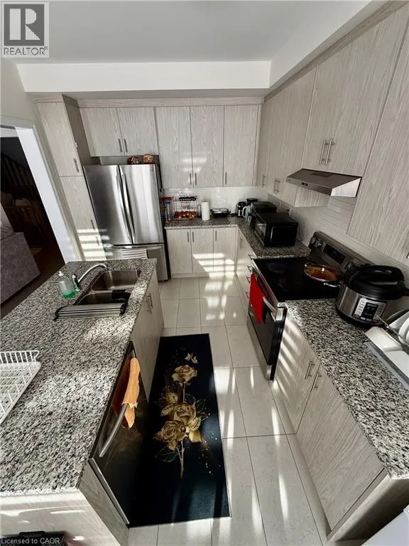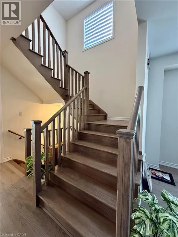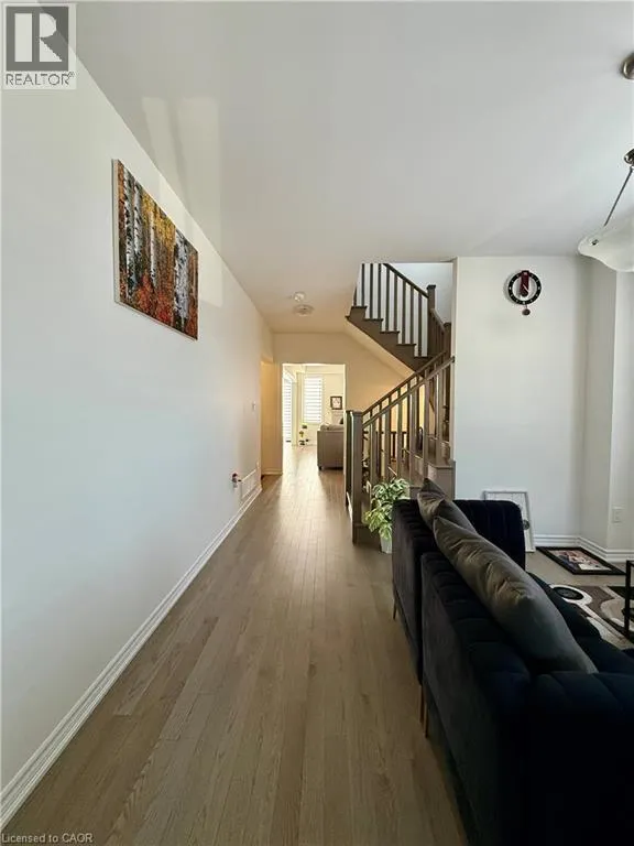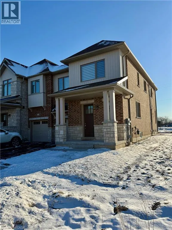 Strickland ave To Molnar Cresent Discover modern comfort in the sought-after Lindvest community of West Brant, Brantford! This stunning end-unit townhome offers 2,105 sq ft of bright, thoughtfully upgraded living spaceâperfect for families or professionals seeking style and convenience. Step inside to freshly painted walls throughout, gleaming main-floor hardwood flooring, and elegant oak wood stairs that lead you up to the second level. The spacious main floor boasts 9 ft ceilings, an abundance of large windows flooding the home with natural light, a generous living/dining area, and a cozy family room featuring a fireplaceâideal for relaxing evenings. The heart of the home is the upgraded kitchen, complete with sleek granite countertops, stylish backsplash, a large island, breakfast area, and brand-new stainless steel appliances (full 5-piece set). It opens seamlessly to a big backyard, perfect for summer gatherings. Upstairs, youâll find four generously sized bedrooms, including a spacious primary retreat with a large walk-in closet and a luxurious 4-piece ensuite. The other three bedrooms share a convenient 3-piece bath, while upstairs laundry adds everyday ease. Enjoy zebra blinds for privacy and light control, plus central air conditioning for year-round comfort. The unfinished basement provides ample storage and future potential, including a cold cellar. This move-in-ready gem is just steps from top-rated schools, shopping, restaurants, sports complexes, and scenic walking trailsâeverything you need is right nearby. Donât miss this beautifully maintained, upgraded townhomeâready for you to move in and make it yours today! (id:27476)