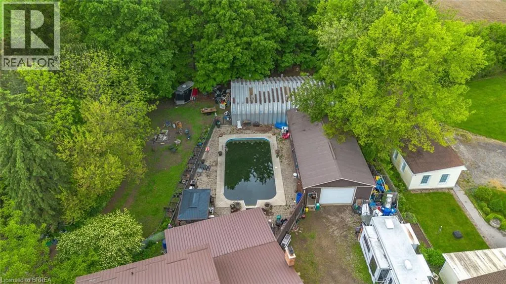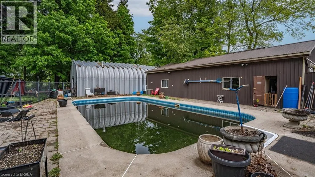 Cockshutt Road to Campbell Farm Road Welcome to 279 Cockshutt Road in Brantford â a charming and spacious 2-storey home nestled on a beautifully landscaped 0.92-acre lot in a tranquil rural setting. This property offers approximately 3,507 sq ft of living space, including 3 bedrooms and 2 full bathrooms, making it perfect for families or multi-generational living. The main floor features blonde hardwood and tile flooring, a bright and inviting layout with a formal living room, a cozy family room with wood burning fireplace, a separate dining area, and a well-appointed kitchen filled with natural light and ample cabinetry. Upstairs, you'll find 3 bedrooms and 2 full bathrooms, while the partially finished basement offers flexible space for a rec room, office, or additional guest quarters with a walk-up back entrance. Outside, enjoy the peaceful surroundings, mature trees, and a large yard, covered porch with bar and hot tub, and oversized in-ground pool ideal for entertaining or relaxing. The home also includes a heated detached 6-car garage, additional large insulated/ heated Quonset, and parking for 10+ vehicles. Recent updates include roof shingles (2016) and a natural gas forced-air heating and central A/C system. With a private well and septic system, this home offers self-sufficient living just minutes from Brantfordâs conveniences, schools, and highways. Zoned residential and located near the corner of Cockshutt Road and Campbell Farm Road, this property is a rare opportunity to enjoy country living with modern comforts. (id:27476)