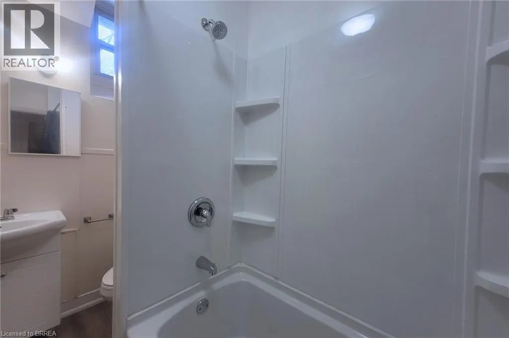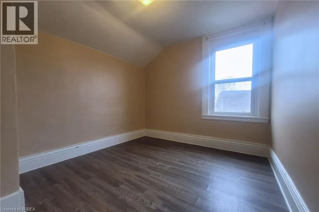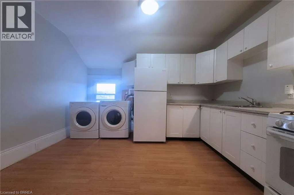 Wayne Gretzky Pkwy to Colborne Street E continues to Dalhousie Street, make a left onto Peel Street and a right onto East Ave. Property will be on your left. Upper unit available immediately with private side-door entry. This bright 2-bedroom apartment features an eat-in kitchen, laundry in the unit, a recently renovated bathroom, and a carpet-free interior for easy maintenance. The unit has been professionally cleaned and is move-in ready. Enjoy access to a shared backyard and a convenient location within walking distance to amenities, parks, and transit. Plenty of street parking available. Tenants are responsible for gas, hydro, and water. Application required with full credit report, proof of income, letter of employment, photo ID, and references. (id:27476)