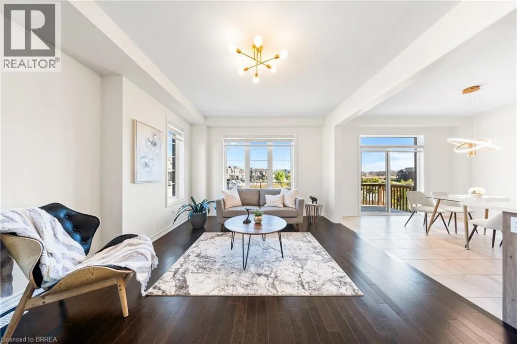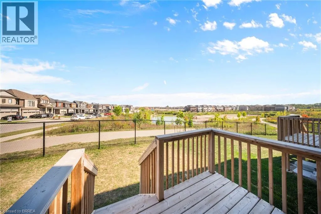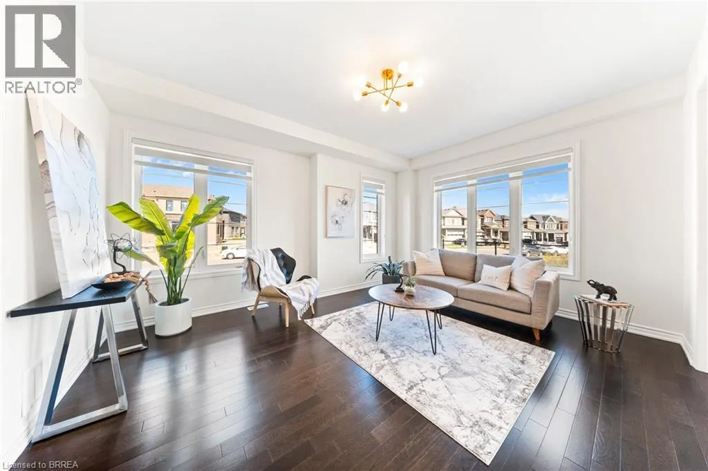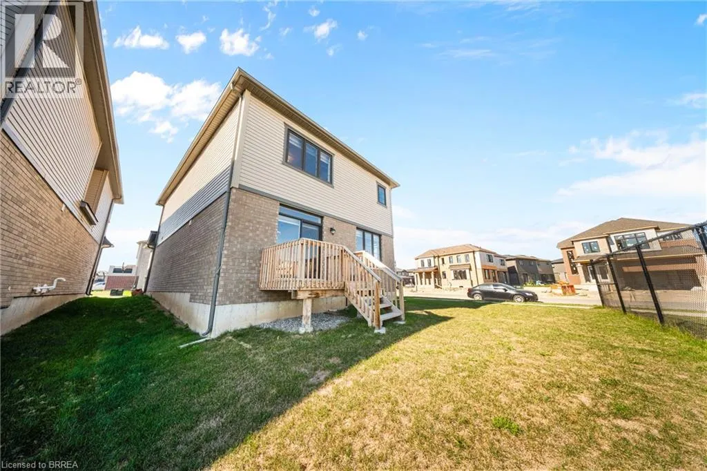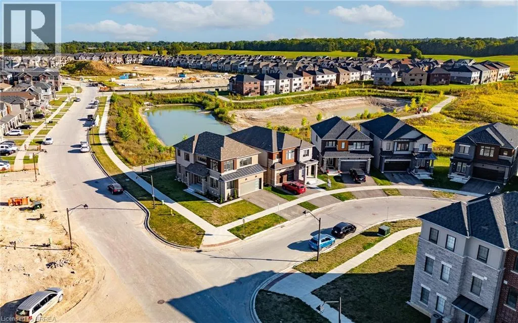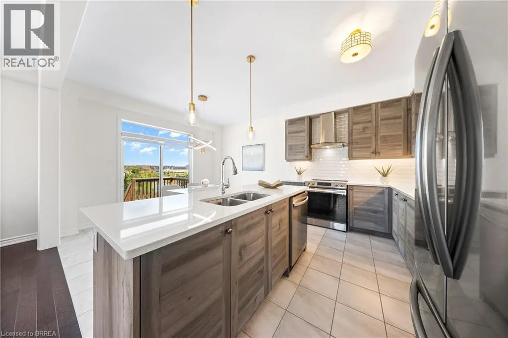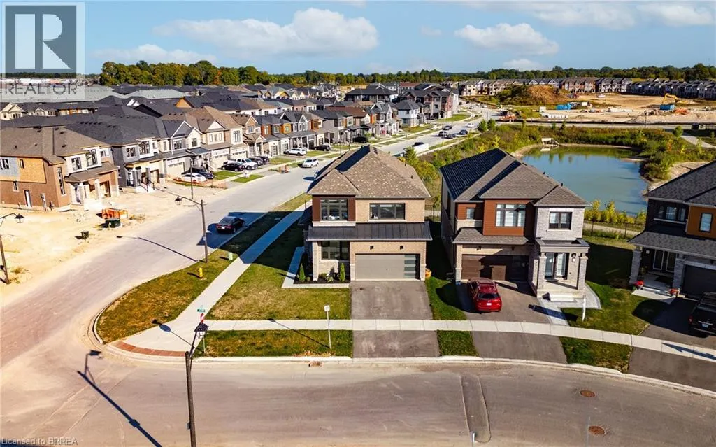 SHELLARDS LANE TO GILLESPIE DR TO BEE CRES. 1 Bee Crescent isnt just a home - its a statement. Sitting proudly on a corner lot in West Brant, this modern showstopper delivers over 2,100 sq ft of bold, stylish living with 4 bedrooms, 3.5 baths, and a layout that screams lifestyle. The moment you step inside, you're greeted with space and light. A versatile office/sitting room and powder room kick things off before the home opens up into the heart of it all - a massive open-concept living, dining, and kitchen zone built for entertaining, relaxing, and everyday family life. The kitchen is a chefs dream with quartz counters, stainless steel appliances, and endless storage, all framed by oversized windows that pull in natural light and backyard views. Upstairs, the hardwood stairs and hall lead you to a level designed for comfort. The primary retreat is pure luxury a spa-style ensuite with separate tub and shower, dual closets (including a walk-in), and space to breathe. Three more large bedrooms, a full bath, and laundry right where you need it complete the floor. Outside, the modern curb appeal speaks volumes: double car garage, professional landscaping, striking exterior design - and the ultimate backdrop - this home backs onto a trail, greenspace, and pond. Imagine morning coffee with nature as your neighbour. All of this, steps from schools, trails, parks, shopping, dining, and exciting new amenities in Brantfords fastest-growing neighbourhood. Why settle for ordinary? Start living your dream lifestyle at 1 Bee Crescent - where modern design meets everyday magic. (id:27476)