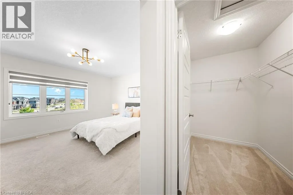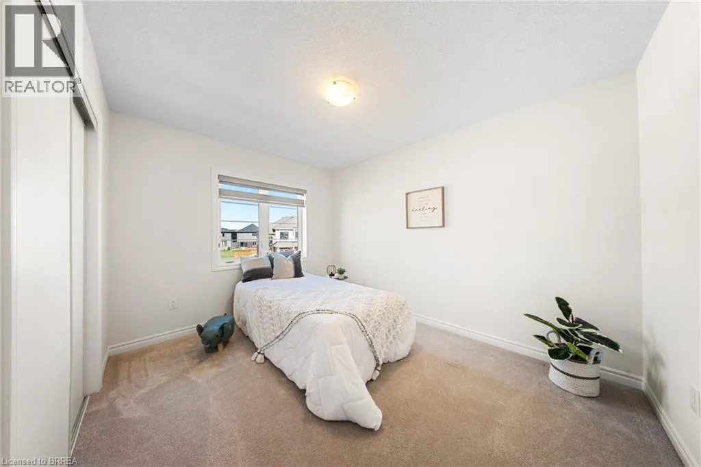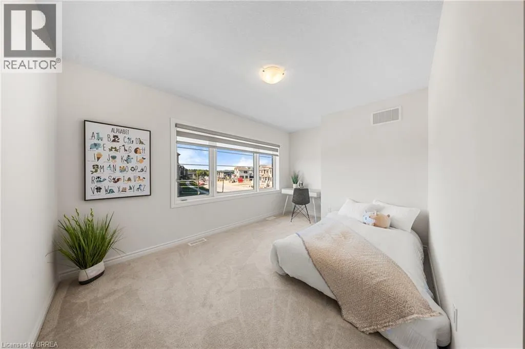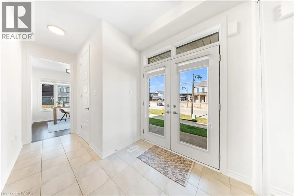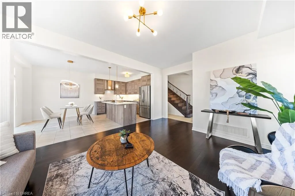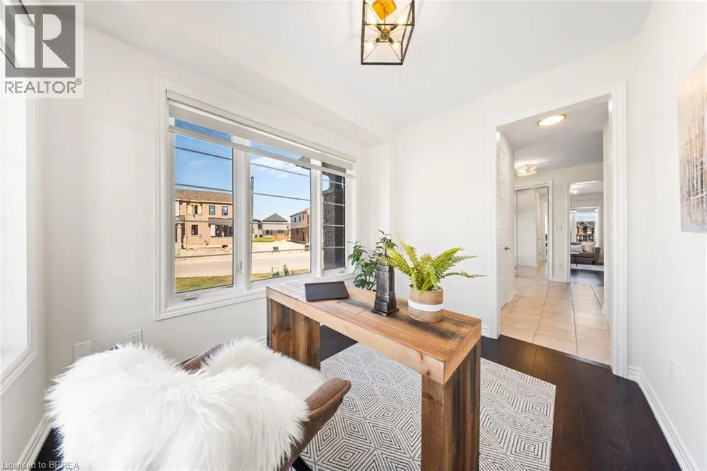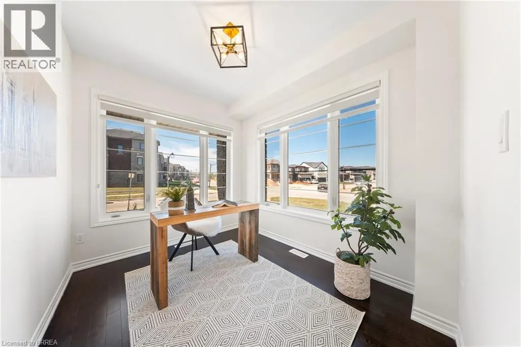 SHELLARDS LANE TO GILLESPIE DR TO BEE CRES. 1 Bee Crescent isnt just a home - its a statement. Sitting proudly on a corner lot in West Brant, this modern showstopper delivers over 2,100 sq ft of bold, stylish living with 4 bedrooms, 3.5 baths, and a layout that screams lifestyle. The moment you step inside, you're greeted with space and light. A versatile office/sitting room and powder room kick things off before the home opens up into the heart of it all - a massive open-concept living, dining, and kitchen zone built for entertaining, relaxing, and everyday family life. The kitchen is a chefs dream with quartz counters, stainless steel appliances, and endless storage, all framed by oversized windows that pull in natural light and backyard views. Upstairs, the hardwood stairs and hall lead you to a level designed for comfort. The primary retreat is pure luxury a spa-style ensuite with separate tub and shower, dual closets (including a walk-in), and space to breathe. Three more large bedrooms, a full bath, and laundry right where you need it complete the floor. Outside, the modern curb appeal speaks volumes: double car garage, professional landscaping, striking exterior design - and the ultimate backdrop - this home backs onto a trail, greenspace, and pond. Imagine morning coffee with nature as your neighbour. All of this, steps from schools, trails, parks, shopping, dining, and exciting new amenities in Brantfords fastest-growing neighbourhood. Why settle for ordinary? Start living your dream lifestyle at 1 Bee Crescent - where modern design meets everyday magic. (id:27476)