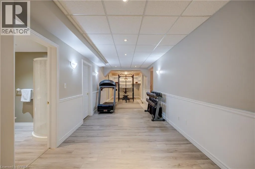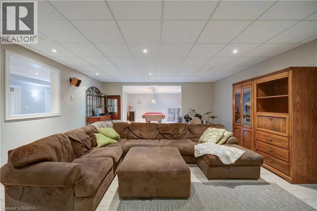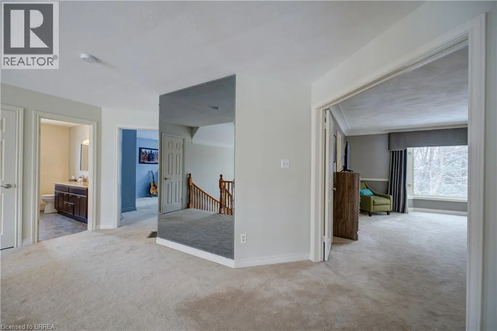 Ava Rd. and Scarfe Gardens Prestigious Court location close to Brantford Golf and Country Club. Private ravine lot with newer inground pool. Grand entranceway with spiral staircase and vaulted ceilings. Front sitting room with large window and natural wood fireplace. Main floor office with beautiful wood inlays and built-in shelves and cabinets. Large formal dining room with bay window overlooking rear wooded area. Newly renovated kitchen, eat-in area with three walls of windows overlooking inground pool. Sunken main floor family room with natural wood fireplace. Beautiful main floor, laundry room with built-in overhead cabinets and lowers. Upper level: Four spacious bedrooms. Large primary suite with bay window overlooking ravine, recently renovated 4pc bathroom with jet, soaker tub, and glass shower, his and her sinks and walk-in closet. Second level: 4pc bathroom recently renovated. Large renovated bright lower level. Rec room with gas fireplace and pool table area, separate home gym and three-piece bathroom. Fully fenced rear yard with newer, inground pool 2023, hot tub with gazebo and stamped concrete; all overlooking picturesque private wooded ravine. (id:27476)