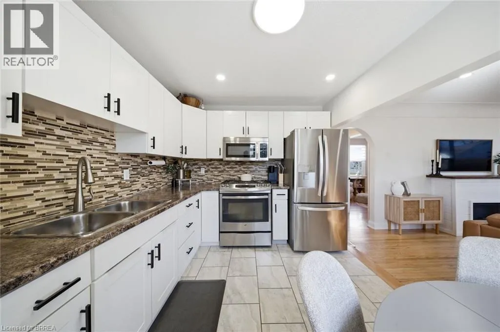 Nestled on a quiet, mature street, 31 Willow Drive combines timeless charm with thoughtful updates. The sunlit living room features original hardwood floors and an inviting fireplace (electric) open to the kitchen (eat-in dining room), 2+1 bedrooms and 2 fully updated bathrooms. A newly renovated basement expands your living options with fresh, modern finishes. Outdoors is an oversized fenced yard offers privacy, large deck, gas BBQ hook-up and room to play ,double car driveway, while the one-car garage adds everyday convenience. With close proximity to Hwy 403, the Wayne Gretzky Centre, schools, city transit, shopping and scenic parks, this home offers an ideal balance of tranquility and accessibility. (id:27476)