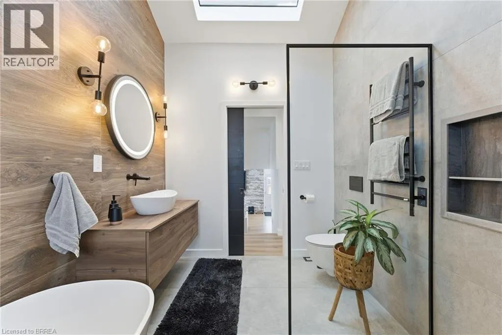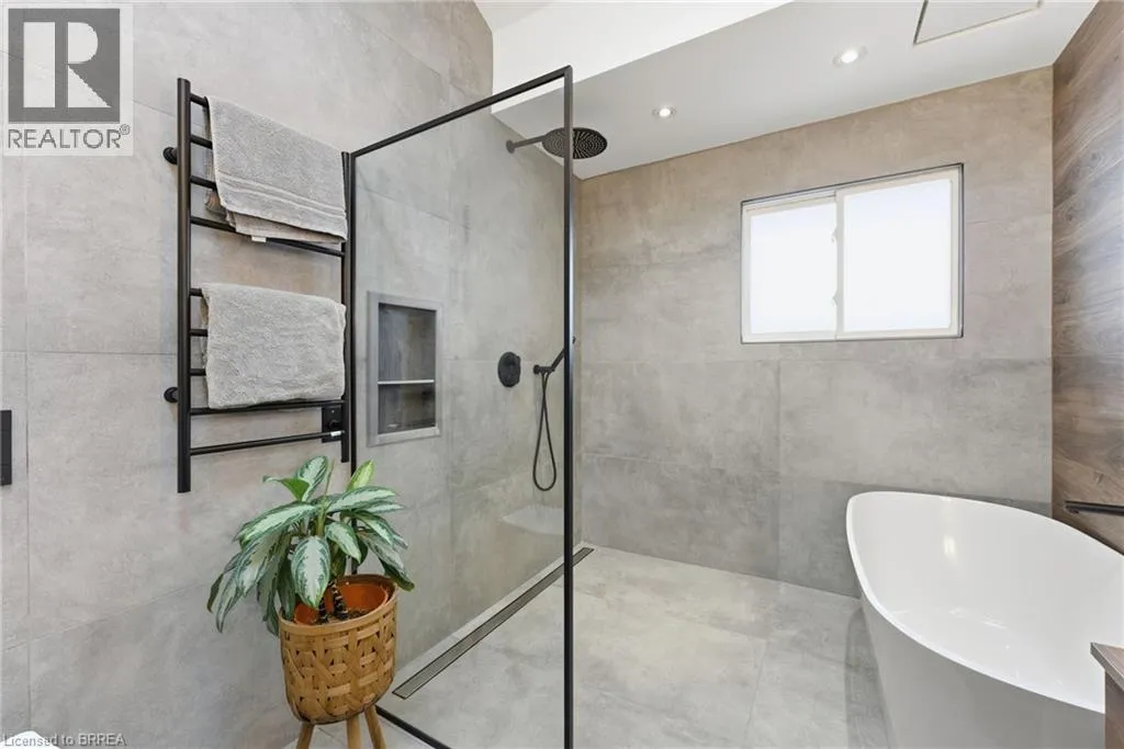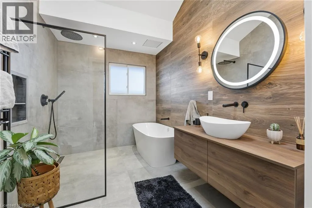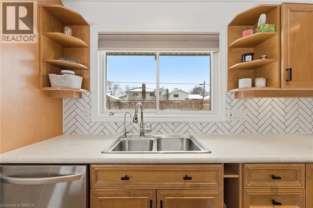 Colborne to Forest to Hickery. Welcome to 35 Hickery Place, a beautifully updated 3-level side split tucked away on a quiet Brantford street, offering space, style, and future potential. Set on an exceptionally large lot, this 2 bedroom, 2 bathroom home has been thoughtfully renovated from top to bottom and is truly move-in ready. The main floor features a bright, open-concept layout designed for everyday living and entertaining. The living room is highlighted by a stylish accent wall, while the updated kitchen offers a functional breakfast bar that opens seamlessly to the space. New flooring runs throughout the main and upper levels, complemented by an upgraded staircase with elegant wrought-iron spindles for a modern, cohesive look. The show-stopping main bathroom has been completely redesigned and includes a stunning walk-in shower and a smart, non-overflow soaking tub, creating a spa-like retreat. Major updates provide peace of mind, including a new furnace (2025), new water heater (2025), water softener and purifier (2022), and upgraded insulation throughout with attic insulation increased to R60 and crawl space to R24. The lower level offers a separate entrance, opening the door to excellent in-law or future income potential. Outside, enjoy a newly poured concrete pad, updated landscaping, and a new front fence that adds both curb appeal and privacy. With its generous lot size, modern upgrades, and flexible layout, 35 Hickery Place is an ideal opportunity for first-time buyers, downsizers, or investors alike. A must-see home in a fantastic Brantford location. (id:27476)