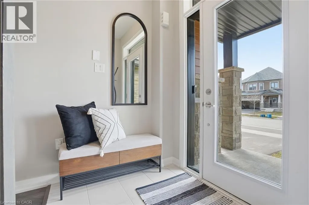 BRANT COUNTY RD 18 TO GARDEN AVE TO SLEETH ST Maintained to an exceptional standard, this immaculate contemporary home, built in 2021, offers a fresh, refined atmosphere and impeccable presentation throughout. Completely carpet-free, the main level features impressive 9' ceilings, elegant oak stairs leading to the second floor and motorized blinds on almost all windows for added convenience. A thoughtfully designed layout includes a designated main-level laundry room with additional storage. The spacious kitchen is the heart of the home, showcasing quartz countertops, an island and ample workspace, all overlooking the inviting great room with a fireplaceâperfect for everyday living and entertaining alike. Upstairs, youâll find 4 generously sized bedrooms, offering plenty of space for family, guests or a home office. The finished basement provides even more living space with a stylish rec room featuring a striking feature wall and electric fireplace, along with a fun surprise playroom tucked under the stairsâbe sure to check it out! Situated in a newer subdivision of modern homes with quiet residential zoning, this property also offers very quick access to Highway 403 and is conveniently close to shopping, schools, hospitals, transit, as well as parks and sports facilities. Donât be TOO LATE*! *REG TM. RSA. (id:27476)