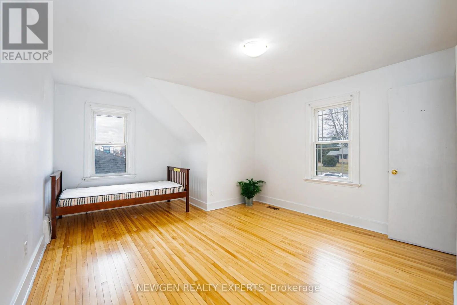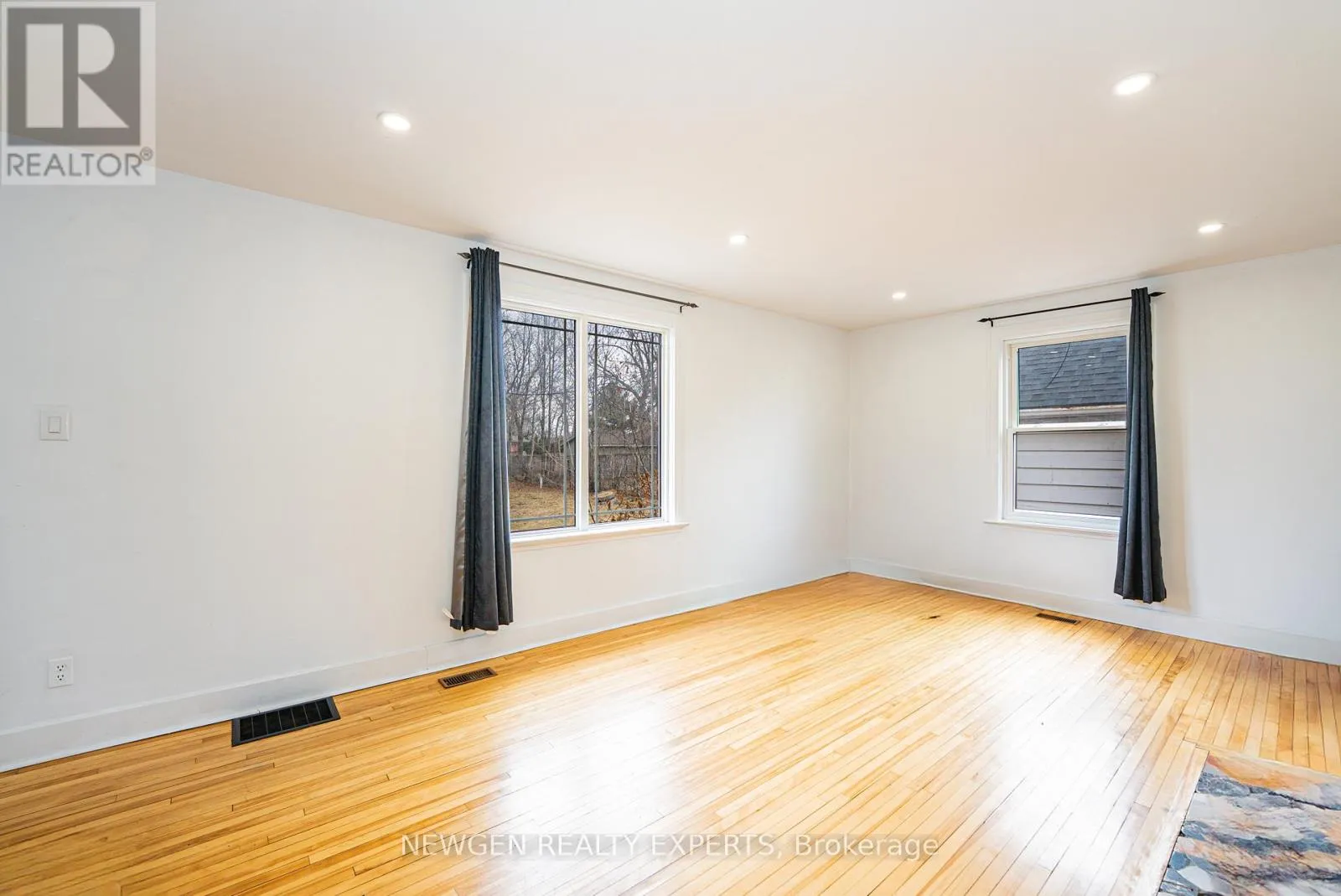 Cross Streets: Directions King George Rd. ** Directions: King George Rd. Well-maintained home available for lease located on one of Brantford's main arterial roads, offering excellent accessibility and convenience. This spacious property features a functional layout with hardwood flooring throughout, including a formal dining area, bright family room, kitchen with breakfast nook, and a powder room on the main level. The upper level offers three generously sized bedrooms and a full bathroom. Situated on a large lot with front gravel parking, double driveway access, a private backyard, and a detached garage, providing ample parking and outdoor space. Conveniently located close to major routes, shopping, schools, and amenities. (id:27476)