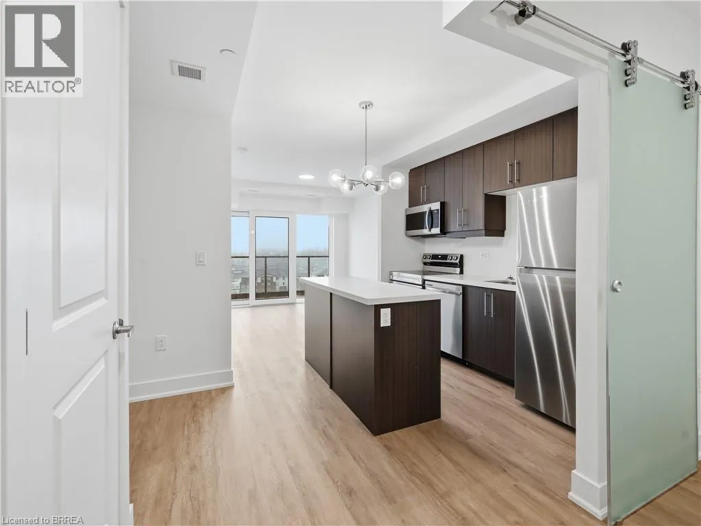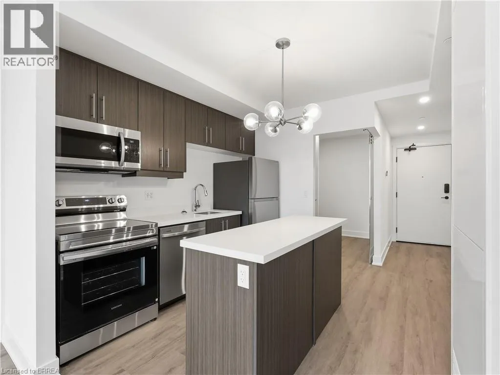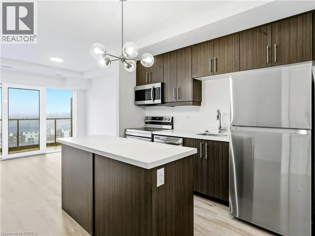 Cross Street: Shellard Lane Welcome to this brand new 1-bedroom + den + study condo in Brantfordâs desirable West Brant community. This thoughtfully designed unit offers 2 full bathrooms, 9-foot ceilings, floor-to-ceiling windows, and a bright open-concept layout. The upgraded kitchen features sleek finishes, quality countertops, and stainless steel appliances. Enjoy unobstructed views from the private balcony, perfect for relaxing or enjoying your morning coffee. The den and separate study provide flexible space for a home office, guest area, or hobby room. Additional features include keyless entry, underground parking, a storage locker, and access to excellent building amenities including a gym, yoga studio, and party room. Conveniently located close to shopping, parks, and public transit, this condo offers modern comfort and everyday convenience. (id:27476)