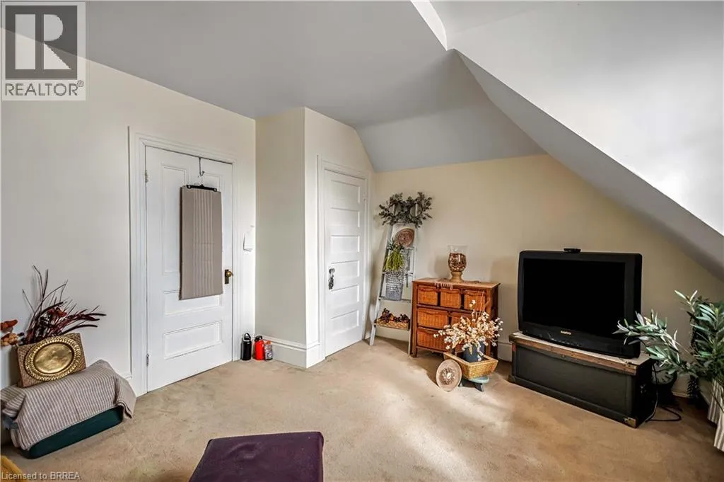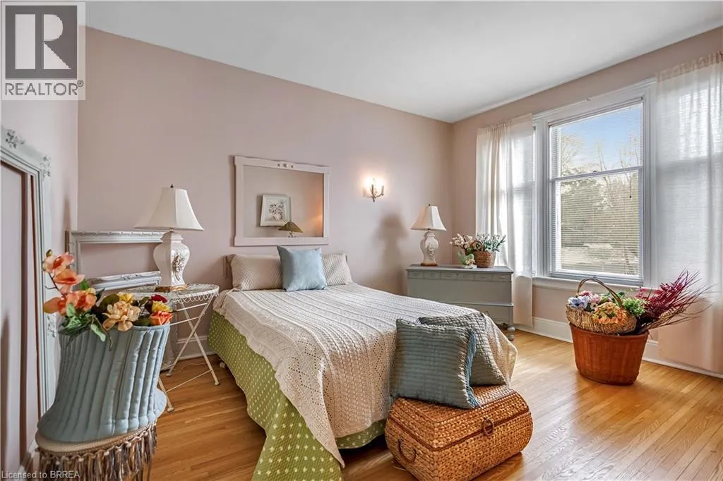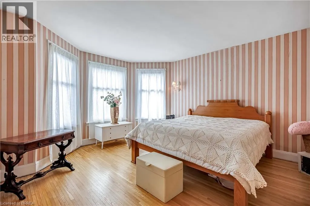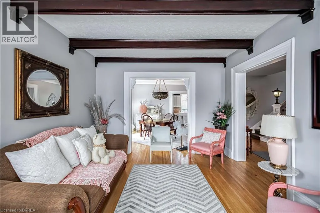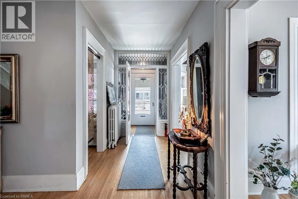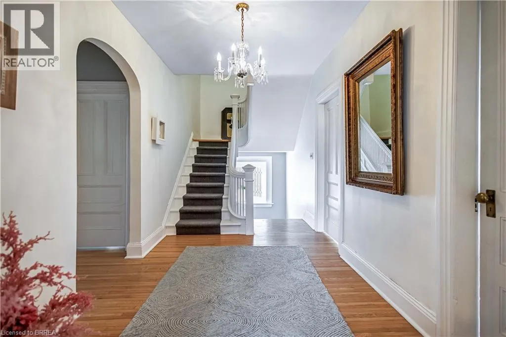 South on King George Rd. which turns into St. Paul's Ave, left onto Brant Avenue and right onto Lorne Cresent. Location, location, location! Nestled in the heart of Brantfordâs historic district, this impressive Victorian-era 2½-storey home is rich in character and timeless charm. Step through stunning leaded glass doors into a spacious, inviting foyer, where youâre immediately welcomed by three interconnected principal rooms and a striking Edwardian-style staircase. With over 3,300 sq. ft. of above-grade living space, the main floor features a formal living room, cozy sitting room with gas fireplace, elegant dining room with ornate chandelier, and an eat-in kitchen overlooking the backyard. From the detailed craftsmanshipâintricate woodwork, curved and bay windowsâto soaring ceilings, cove mouldings, and gleaming hardwood floors, every inch reflects classic architectural beauty. Offering 6 bedrooms and 4 bathrooms, this home is perfectly suited for a large or growing family. The second level hosts four spacious bedrooms, a built-in wardrobe dresser linen closet, a main bath with walk-in shower and double vanity, and a primary bedroom with a 2-piece ensuite. The third level adds two additional bedrooms and a versatile entertainment spaceâperfect for kids, guests, or a home office setup. The walk-out basement provides excellent potential for an in-law suite or accessory unit and already includes a 3-piece bathroom. Notable updates include a new boiler (2021), upgraded wiring with a 200-amp breaker panel, and durable fiberglass shingles. Set on a generous 0.21-acre lot, the property features a classic detached garage, a sprawling front porch, and a rear deck overlooking the in-ground poolâideal for summer entertaining. Located in the sought-after Dufferin area, enjoy picturesque tree-lined streets just steps from parks, schools, tennis and pickleball courts, and the Brantford Golf & Country Club. (id:27476)