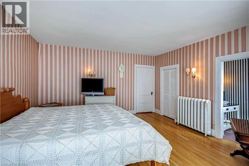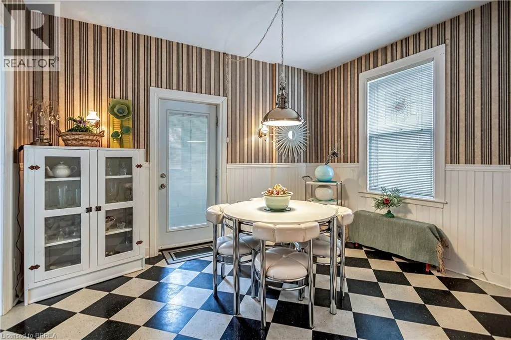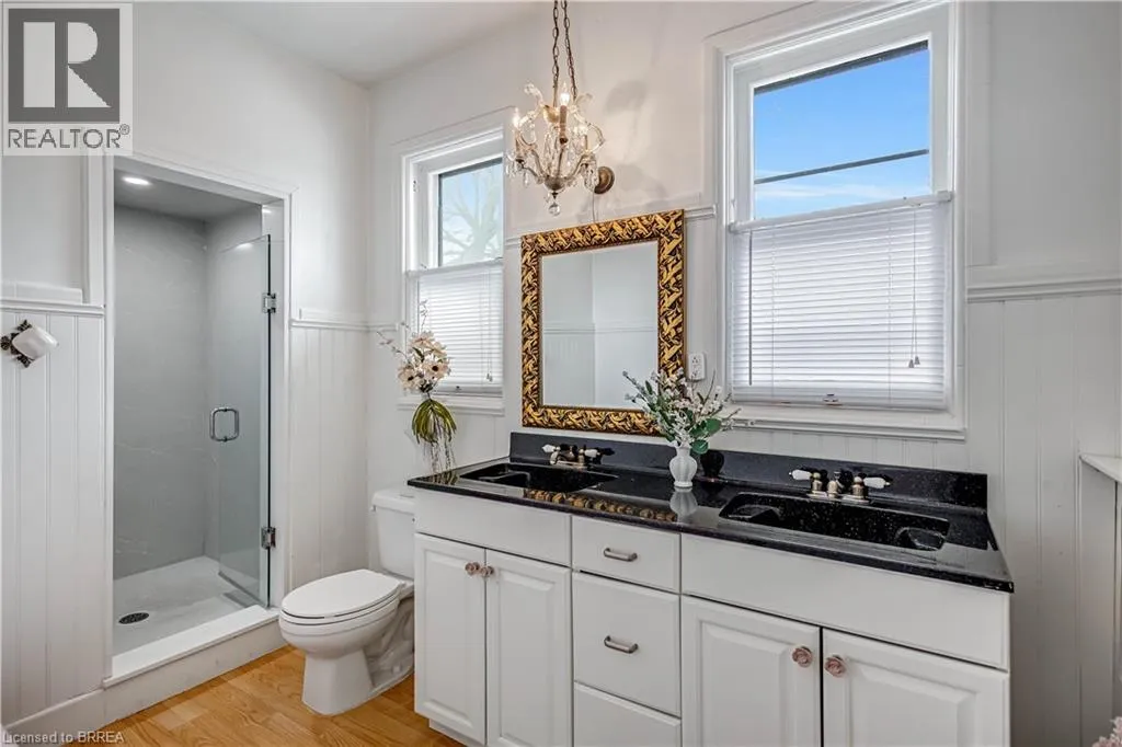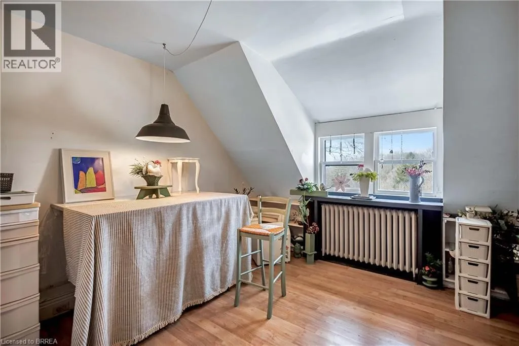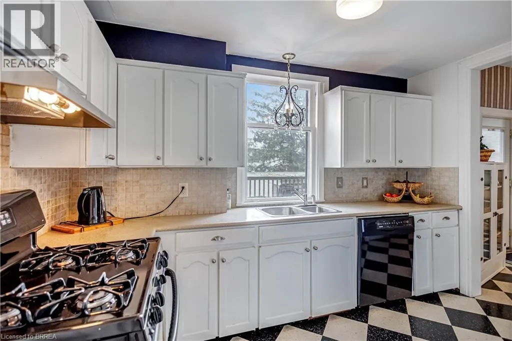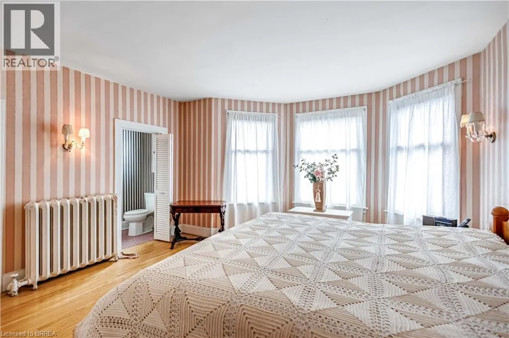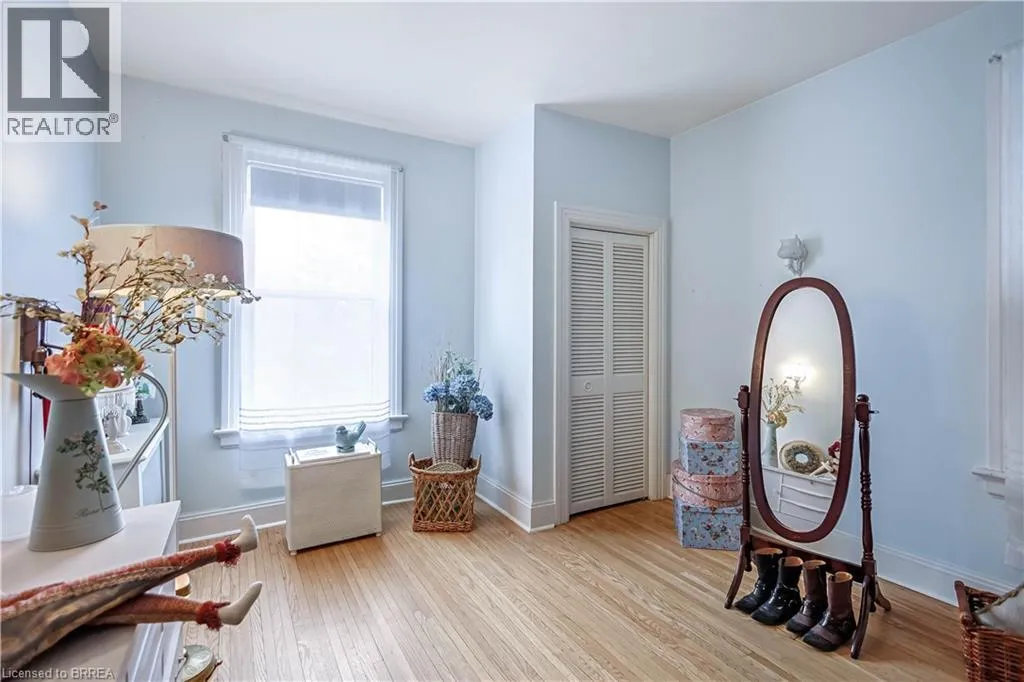 South on King George Rd. which turns into St. Paul's Ave, left onto Brant Avenue and right onto Lorne Cresent. Location, location, location! Nestled in the heart of Brantfordâs historic district, this impressive Victorian-era 2½-storey home is rich in character and timeless charm. Step through stunning leaded glass doors into a spacious, inviting foyer, where youâre immediately welcomed by three interconnected principal rooms and a striking Edwardian-style staircase. With over 3,300 sq. ft. of above-grade living space, the main floor features a formal living room, cozy sitting room with gas fireplace, elegant dining room with ornate chandelier, and an eat-in kitchen overlooking the backyard. From the detailed craftsmanshipâintricate woodwork, curved and bay windowsâto soaring ceilings, cove mouldings, and gleaming hardwood floors, every inch reflects classic architectural beauty. Offering 6 bedrooms and 4 bathrooms, this home is perfectly suited for a large or growing family. The second level hosts four spacious bedrooms, a built-in wardrobe dresser linen closet, a main bath with walk-in shower and double vanity, and a primary bedroom with a 2-piece ensuite. The third level adds two additional bedrooms and a versatile entertainment spaceâperfect for kids, guests, or a home office setup. The walk-out basement provides excellent potential for an in-law suite or accessory unit and already includes a 3-piece bathroom. Notable updates include a new boiler (2021), upgraded wiring with a 200-amp breaker panel, and durable fiberglass shingles. Set on a generous 0.21-acre lot, the property features a classic detached garage, a sprawling front porch, and a rear deck overlooking the in-ground poolâideal for summer entertaining. Located in the sought-after Dufferin area, enjoy picturesque tree-lined streets just steps from parks, schools, tennis and pickleball courts, and the Brantford Golf & Country Club. (id:27476)