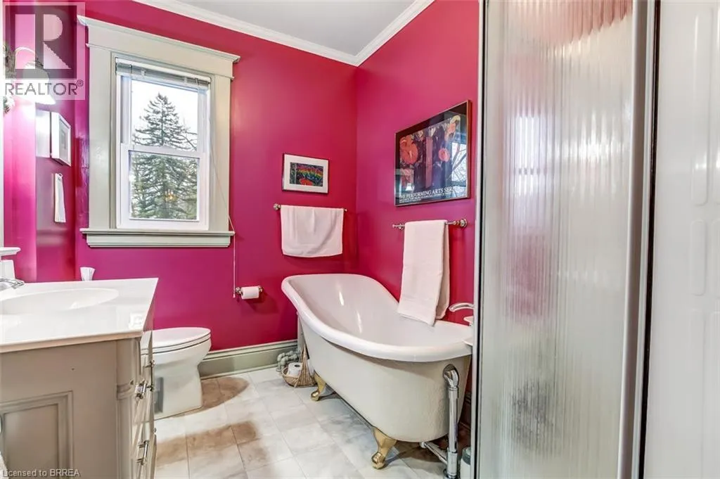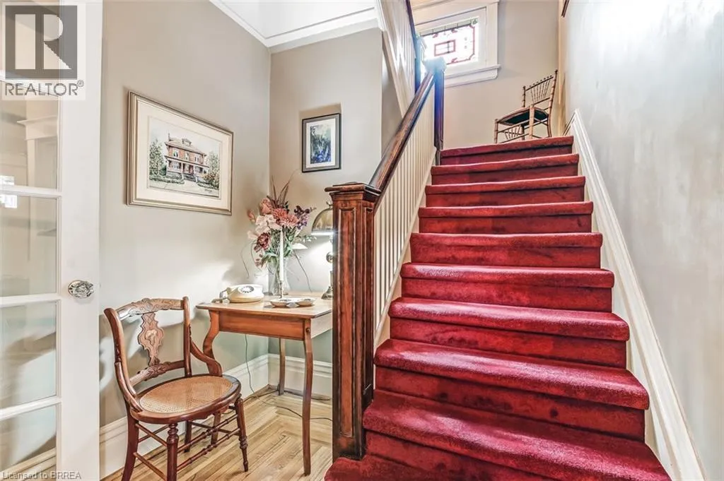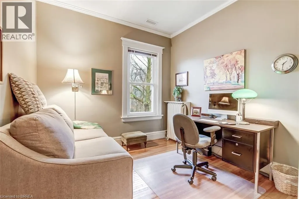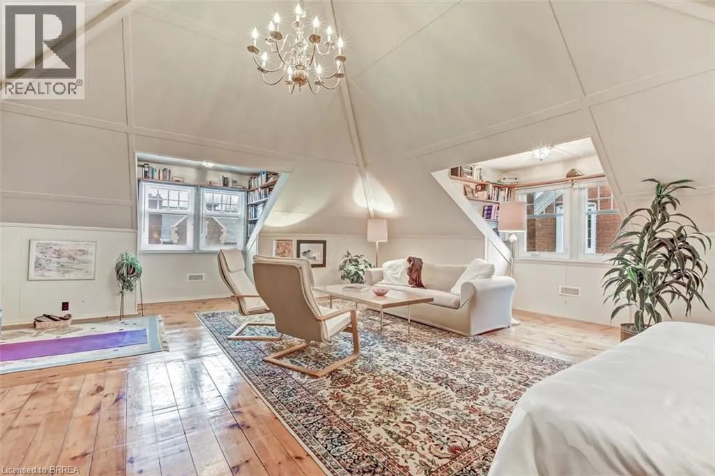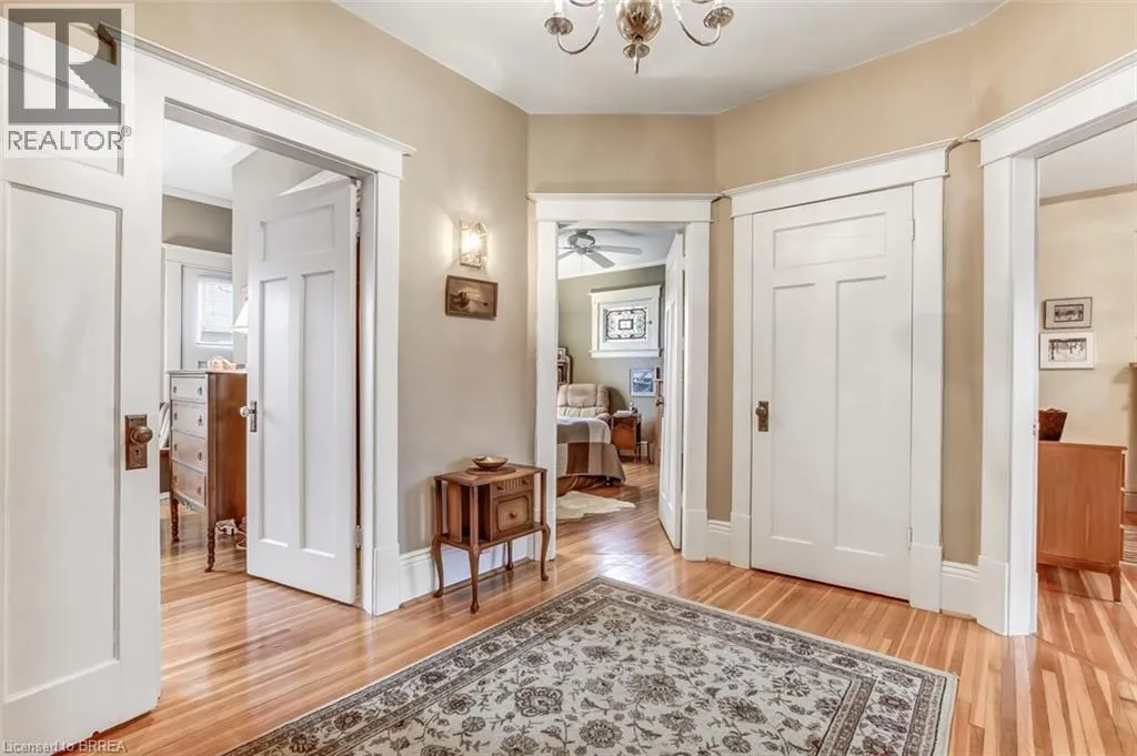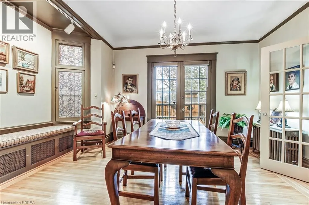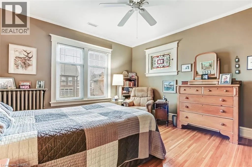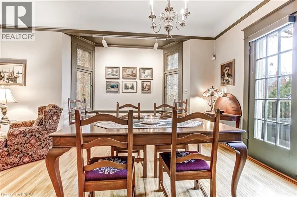 St. Paul Avenue to Dufferin Avenue and right on Chestnut Avenue First time offered in 47 Years!!! Prestigious Dufferin area beauty showcasing its original craftsmanship in full glory. Meticulously maintained this 2.5 Storey features original gleaming hardwood floors, traditional millwork, crown moulding, unique stained glass windows, all highlighting this 2658 square foot part of Brantford's history built in 1915. After the front porch greets you with its stately pillars, the charming entrance foyer leads you to a living and dining room you'd be proud to entertain in encompassing the entire length of the home. In keeping with the home's character the kitchen features white cabinetry and a detailed textured ceiling. The second floor boasts 4 generous bedrooms all filled with natural light and complimented with gleaming hardwood floors in pristine condition. The third level loft is a guest room dream with plenty of room for a sitting area and games room featuring a vaulted ceiling and original pine plank floors. The backyard is a piece of paradise with a custom made gazebo, numerous plants and shrubbery all maintained by an inground sprinkler system. Seldom does a home come available of this preservation level in a location second to none with river walking trails minutes from your doorstep. (id:27476)