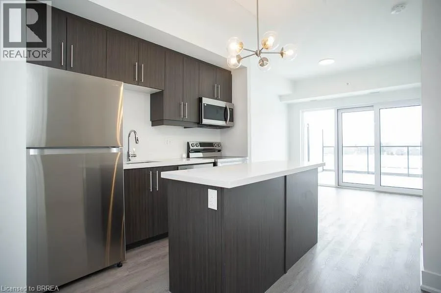 Shellard Lane to Conklin Road Welcome to The Ambrose Condos - an exceptional residence that seamlessly blends luxury, modern design, and effortless living. Ideal for first-time buyers, professionals, and those seeking to downsize without compromise, each thoughtfully designed suite supports a low-maintenance lifestyle tailored to today’s busy schedules. Showcasing striking architecture, this is the first design of its kind in the West Brant community, delivering both sophistication and convenience. The meticulously designed foyer sets the tone, offering a refined and contemporary welcome that leaves a lasting impression on residents and guests alike from its porcelain tile floors, modern lighting and comfortable but sophisticated conversation areas. Residents enjoy an outstanding selection of amenities that set a new standard for condominium living in Brantford. A fully equipped fitness centre, outdoor track, and dedicated yoga studio provide convenient wellness options, while the elegant party room with beautiful views is perfectly suited for hosting larger gatherings. Each suite is appointed with premium finishes, including luxury vinyl plank flooring, quartz countertops in both kitchens and bathrooms, private outdoor terraces for seasonal enjoyment, and the convenience of in-suite laundry. Additional features such as covered parking and secure storage lockers further enhance everyday ease and functionality. The Ambrose Condos offer a superior blend of quality craftsmanship, elevated style, and lifestyle-focused amenities. This is a truly exceptional living experience. (id:27476)