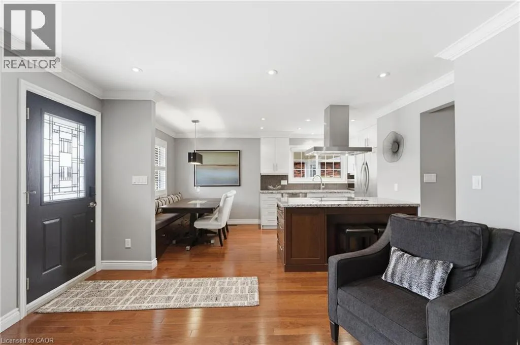 MATERIAL DR TO BUCKINGHAM ST TO MARSHALL ST Welcome to this solid brick bungalow in a convenient Brantford location located close to Centennial park, Wayne Gretzky Sports Centre & the 403. Beautifully updated throughout, the home features a modern kitchen, hardwood floors across the main level, and a bright, inviting living space. Offering 3 bedrooms and 2 full bathrooms, thereâs plenty of room for families or down-sizers alike. The cozy rec room with a gas fireplace provides the perfect place to relax or entertain. An unfinished basement with a separate entrance offers excellent in-law or income potentialâready for your personal touch.Complete with a carport and a private backyard, this home combines comfort, updates, and opportunity in one great package. (id:27476)