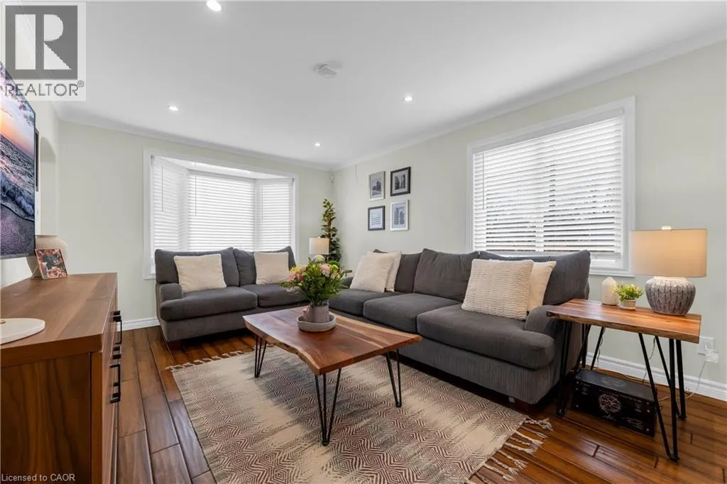 Simply stunning, this beautifully appointed home showcases quality craftsmanship and luxurious updates throughout. From the moment you arrive, the pride of ownership is unmistakable, with charming curb appeal and a sense of care carried through every inch of the property. Inside, experience a home that truly feels even better in person. Meticulously maintained & thoughtfully updated, the interior blends modern style with everyday comfort. The open-concept main floor flows effortlessly, featuring rich flooring, crown moulding, recessed lighting, & expansive windows that fill the space with natural light, creating an inviting atmosphere. At the heart of the home, the stunning updated kitchen (2024) is both functional and beautiful, with updated cabinetry, quartz countertops, a sleek backsplash, soft-close cupboards & accent lighting - designed to impress w/ an added coffee station for convenience! Primary bedroom on main level and a spa-inspired 4-piece bathroom with a luxurious shower system complete the main level. A grand staircase guides you to the upper level, where a sunlit sanctuary awaits. Four skylights fill the spacious bedroom with natural light, complemented by LED lighting and a charming office nook - ideal for working from home. The fully finished basement offers a bright and welcoming environment from large windows and with 2 tone ambient lighting. Here you'll find a comfortable rec room, an additional bedroom, a beautifully finished 4-piece bathroom, and a clean, well-organized laundry space designed for practicality + additional storage space. Step outside to a private backyard featuring a quality-built private fence (2023), large deck overlooking an expansive yard - perfect for entertaining or relaxing - with a garden shed for extra storage. Addt'l highlights include 200 amp service. Complete in 2024: Finished Basement, Driveway , Kitchen update and A/C! Close to all major amenities & hwy access! Turn-key & exceptional... A MUST SEE! Don't miss out! (id:27476)