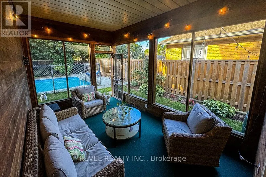 Cross Streets: Memorial & Buckingham. ** Directions: Memorial Dr to Buckingham St. Welcome home to 25 Buckingham St, Brantford. This beautifully maintained 3-bedroom, 2-bathroom raised bungalow is located on a quiet, tree-lined street in the sought-after North End. The main level offers comfortable living with a bright, functional layout, hardwood and tile flooring, and a spacious living area filled with natural light from the large front window. The kitchen features ample cabinetry, generous counter space, and a convenient eat-in dining area. Down the hall, you'll find three well-sized bedrooms and a 4-piece bathroom. The fully renovated basement adds valuable living space, featuring a large rec room with wet bar, laminate flooring, a 3-piece bathroom, laundry area, and plenty of storage. At the rear of the home, a charming cedar-screened sunroom overlooks the private, fully fenced backyard oasis with mature trees and an in-ground saltwater pool, perfect for enjoying summer days. Conveniently located close to parks, schools, the Wayne Gretzky Sports Centre, shopping, dining, and with easy access to Hwy 403. Great opportunity to lease a well-maintained home in a desirable, family-friendly neighbourhood. (id:27476)