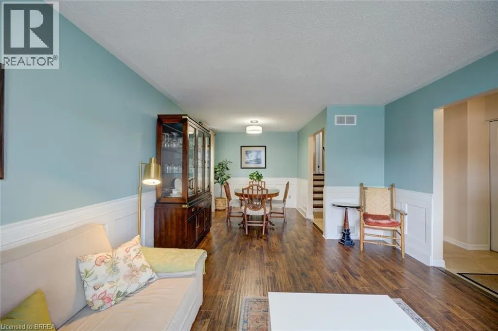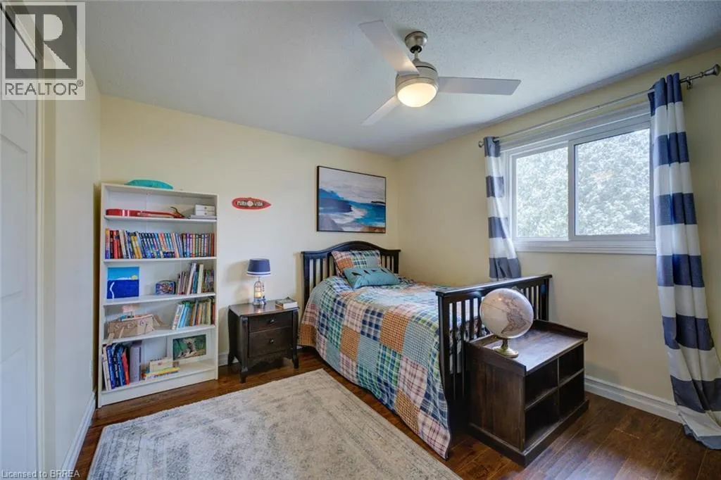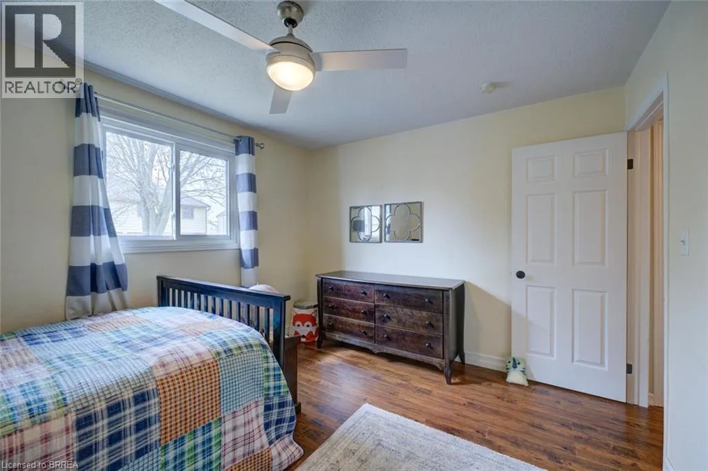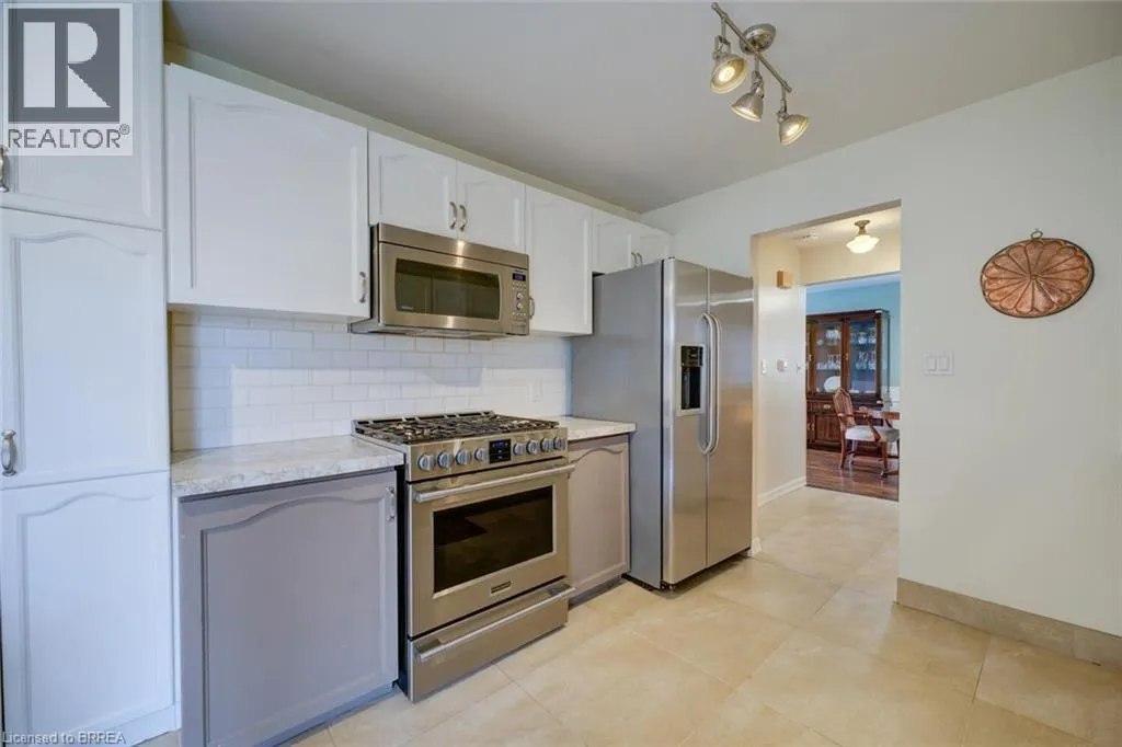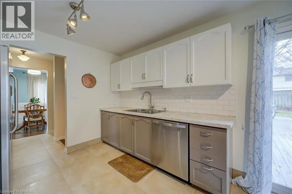 Welcome to an exceptional family home nestled in Brantwood Park in Brantfordâs north end on a quiet crescent. This property offers peaceful living & convenience from excellent schools, parks & playgrounds, close to Lynden Park Mall, Hwy#403 access & all essential amenities. This beautifully maintained 4-level backsplit with over 2255 sq ft of living area offers a versatile layout with 3+1 bedrooms and 3 bathrooms, perfect for families or multi-generational living. The main level welcomes you with an inviting vestibule & foyer, leading into a bright living room with picture window, that flows into a generous dining area, ideal for entertaining! The colossal eat-in kitchen has abundant cabinetry, newer stainless steel appliances w/patio doors opening onto a sprawling wooden deck, perfect for outdoor dining and relaxation. Upstairs, the spacious primary bedroom has a private 4-piece ensuite, while two additional well-sized bedrooms & a partially updated main bathroom complete the upper level. The lower level offers a warm retreat with a massive rec room featuring 9-foot ceilings, handsome wainscotting & cozy gas fireplace to gather around. This level also includes a large 4th bedroom, a well-appointed laundry room with Samsung washer/dryer, deep sink, cabinetry & folding space, along with a stylish 3pc bathroom. The lowest level provides more functional space with a large finished room ideal for multiple uses! Plus an expansive L-shaped storage area. Step out to a fully fenced, beautiful backyard complete with raised garden beds & large shed. Additional features include a secure garage entrance, spacious single-car garage & a double-wide driveway, roof (2020), furnace and A/C (2024), most windows replaced in recent years, newer sliding door and interior doors, updated lighting. Water softener, c/vac rough-in & 100-amp breakers. Elegant 2x2 ceramic tile on the main level and gorgeous laminate throughout. A meticulously cared-for home in a family-friendly neighbourhood! (id:27476)