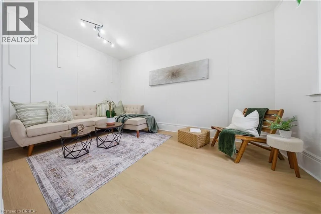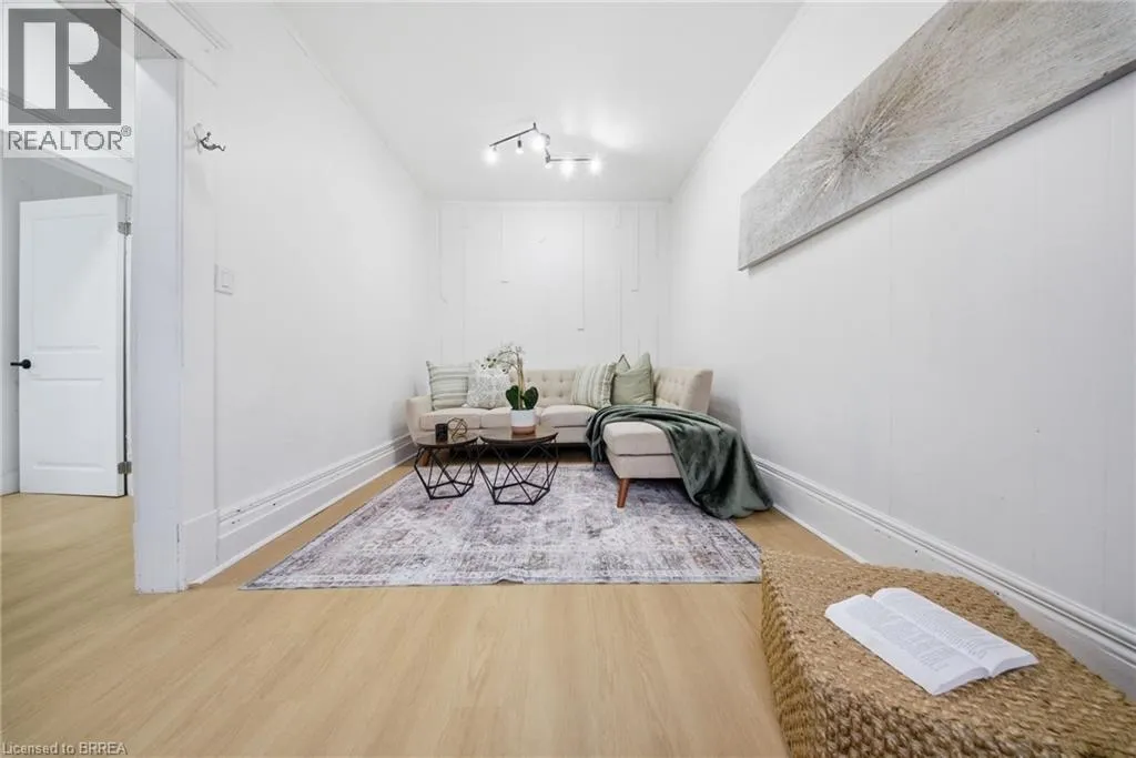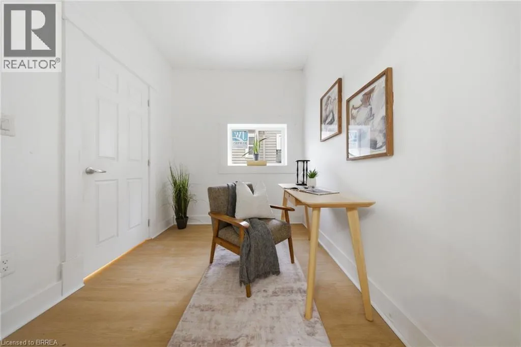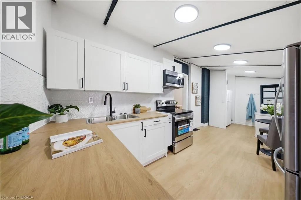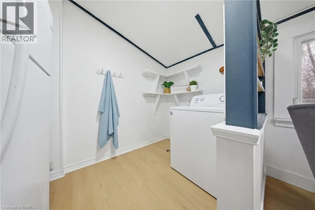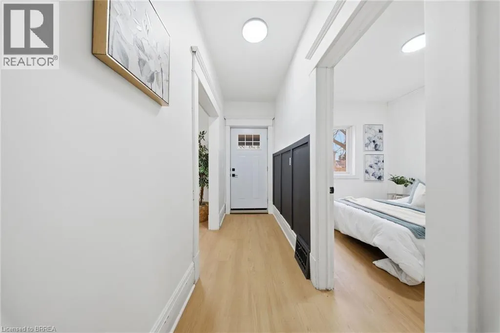 West off Rawdon East off Brock Welcome to 232 Grey Street, a beautifully remodeled 1.5 storey home in the heart of Brantford that perfectly blends charm and modern updates. With fresh paint and brand-new flooring throughout, this inviting home offers a bright and refreshed living space that is ready for you to move in and enjoy. As you enter the home, you are greeted by a spacious foyer featuring attractive wall paneling that adds warmth and character. Just off the entryway is a convenient main-floor bedroom along with a newly updated 3-piece bathroom, creating an ideal setup for guests or those seeking the convenience of one-floor living. The bright and welcoming living room features large windows that allow natural light to pour in, creating a comfortable space to relax and unwind. The dining area provides ample room for larger family gatherings and flows seamlessly into the beautifully updated eat-in kitchen. The kitchen is sure to impress with its loft-style ceiling, recessed lighting, stylish backsplash, brand-new stainless steel appliances, and plenty of workspace, while offering direct access to the backyard for easy indoor-outdoor living. Upstairs you will find two generously sized bedrooms along with an additional 3-piece bathroom, providing a comfortable space for all family members. The fully fenced backyard offers privacy and plenty of room for outdoor enjoyment, gardening, or entertaining. A large detached garage provides excellent storage or workspace possibilities. This home has seen many important updates, including a newer roof on the main house (2025) with the addition roof completed a few years prior, updated vinyl siding, soffits, fascia, and eavestroughs, a 100-amp breaker panel, and a newer furnace. The basement plumbing has also been updated and properly tied into the main line, providing added peace of mind. Conveniently located close to all amenities, this charming and extensively updated home offers comfort, functionality, and value in a great Brantford location. (id:27476)