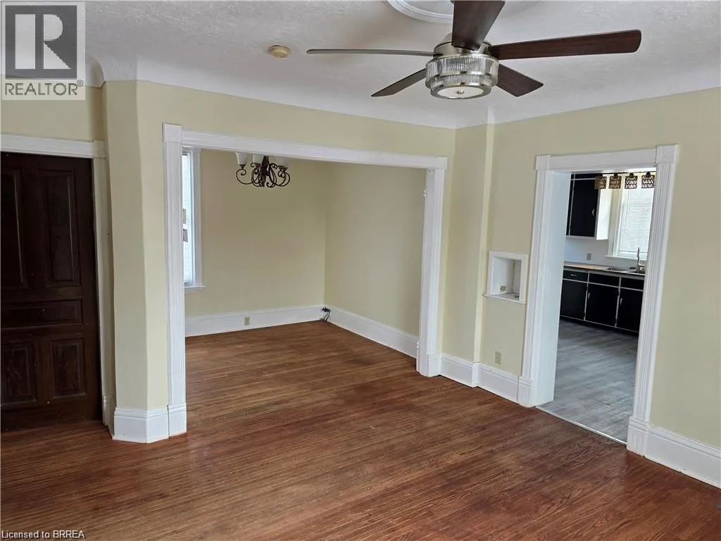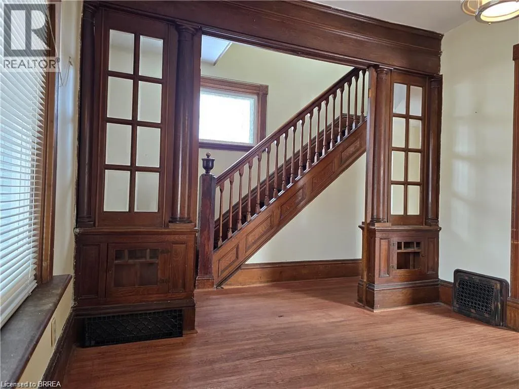Itâs hard to find a home like this with this much space in a great area thatâs still so close to the highway. 21 Johnson Rd is a century 2-storey home set on 0.57 acres in a quiet area, just minutes to Hwy 403. The home offers 3 bedrooms and 1 bathroom, with hardwood floors, 9â ceilings, large windows, and original woodwork throughout. The large kitchen provides plenty of space for everyday living. Outside, enjoy a large yard with mature trees and a wrap-around deck. With no neighbours behind and the rail trail running along the back of the property, it offers privacy and easy access to walking and biking. (id:27476)
