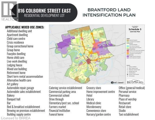 403 to Wayne Gretzky to Colborne St E ATTENTION DEVELOPERS! Welcome to 816 Colborne Street, Brantford! Nestled in the desirable and family-friendly Echo Place neighbourhood, this property offers the perfect blend of convenience and potential. Situated on an impressive lot measuring approximately 43.86ft x 90.63ft x 451.59ft x 94.71ft x 407.48ft, this residential gem is part of Brantford's Intensification Corridor, providing excellent opportunities for future growth. Under the new zoning by-laws with the City of Brantford, the lot will accommodate a total buildable footprint of 10,167 square feet, with a height of 38 meters. Amenities abound with shopping centres, big-box stores, and a variety of restaurants just moments away along Wayne Gretzky Parkway and Colborne Street. In proximity to schools and parks, as well as easy access to Highway 403! Serviced by the Grand Erie District School Board and the Brant Haldimand Norfolk Catholic District School Board, this property perfectly suits future families seeking a community atmosphere. Build in one of Brantfordâs most sought-after locations! (id:27476)