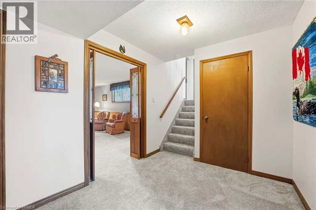 Dunsdon Street Welcome home to 35 Bernard Ave., Brantford. In the mature and desirable Greenbrier community, just steps to Wilkes Park, a short distance to Greenbrier and St. Leo's elementary schools. Only minutes to the 403 and all of Brantford's north end amenities like Costco and the Lynden Park Mall. Offered for the first time on an oversized lot! Immaculately maintained 3+ 2 bed raised ranch with 2 full baths. Custom built with a wide and spacious front foyer that leads to a beautiful sun room in the oversized backyard. Upgrades have been made to the kitchen and flooring, but more recently all new carpet laid in basement (2026). Stay cozy in the large basement rec room with gas fireplace! The furnace was inspected and maintained annually and A/C biannually. As well as vinyl windows throughout! The garage provides easy access to the backyard with garage doors at front and back. A french drain was installed coupled with a sump pump in 2022. Shows A+ come see it for yourself today! (id:27476)