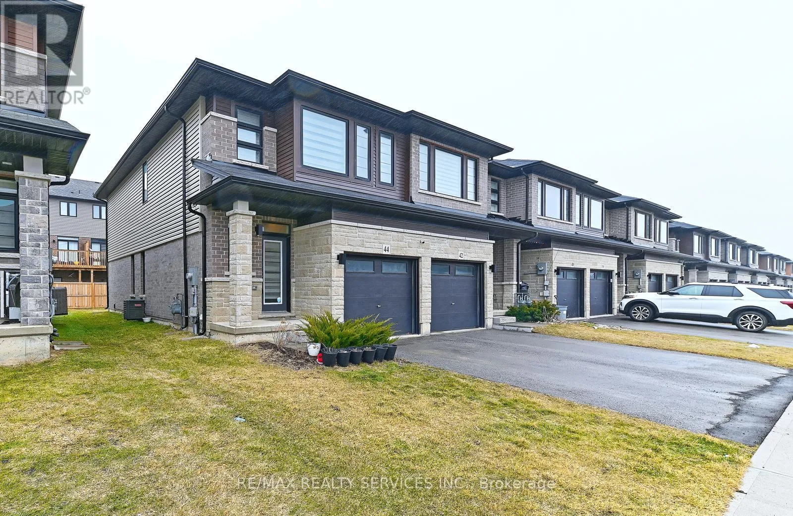 Longboat Run W/Blackburn Drive Beautiful corner end-unit freehold townhouse that feels like a semi-detached home, available for lease in the desirable West Brantford community. This bright and spacious home is only 3 years old and features 3 bedrooms and 2.5 bathrooms. The main floor offers 9-ft smooth ceilings and an open-concept layout with large windows that bring in plenty of natural light. Modern upgraded kitchen with quartz countertops, extended cabinets, stainless steel appliances, undermount deep sink, LED under-cabinet lighting, and a functional island. The Family room offers a walkout to the backyard, Upstairs features a primary bedroom with walk-in closet and private ensuite, a second bedroom with walk-in closet, plus convenient second-floor laundry. Located in a family-friendly neighborhood close to schools, parks, community centre, shopping, scenic trails, visitor parking, and easy highway access. Ideal for families or professionals looking for a bright, modern home in a growing community. (id:27476)