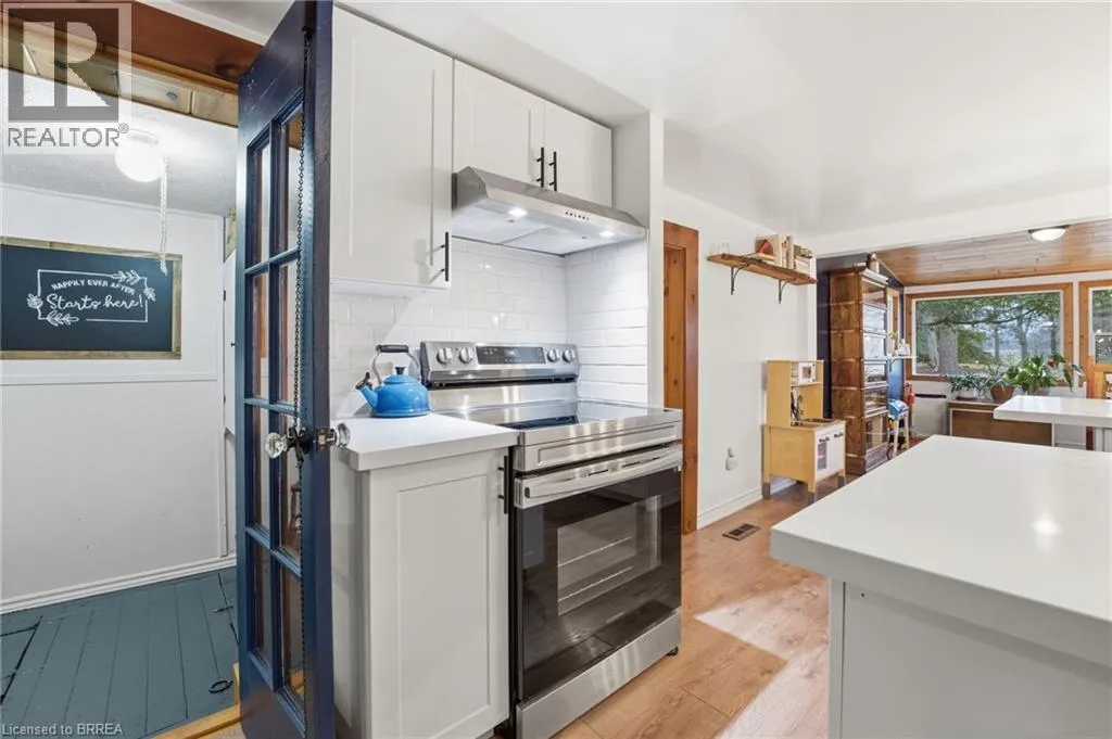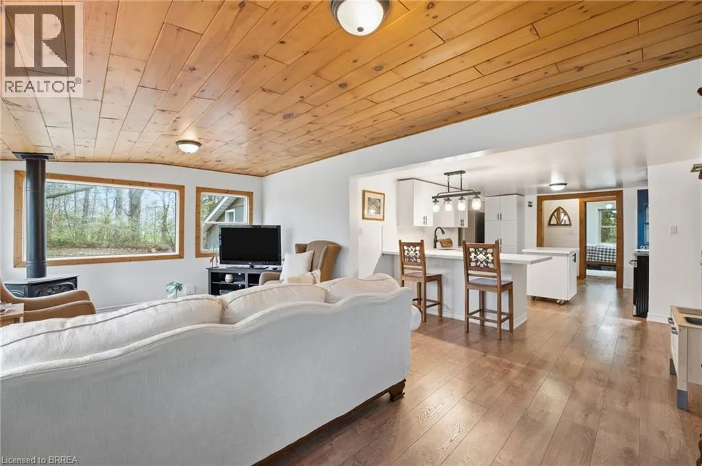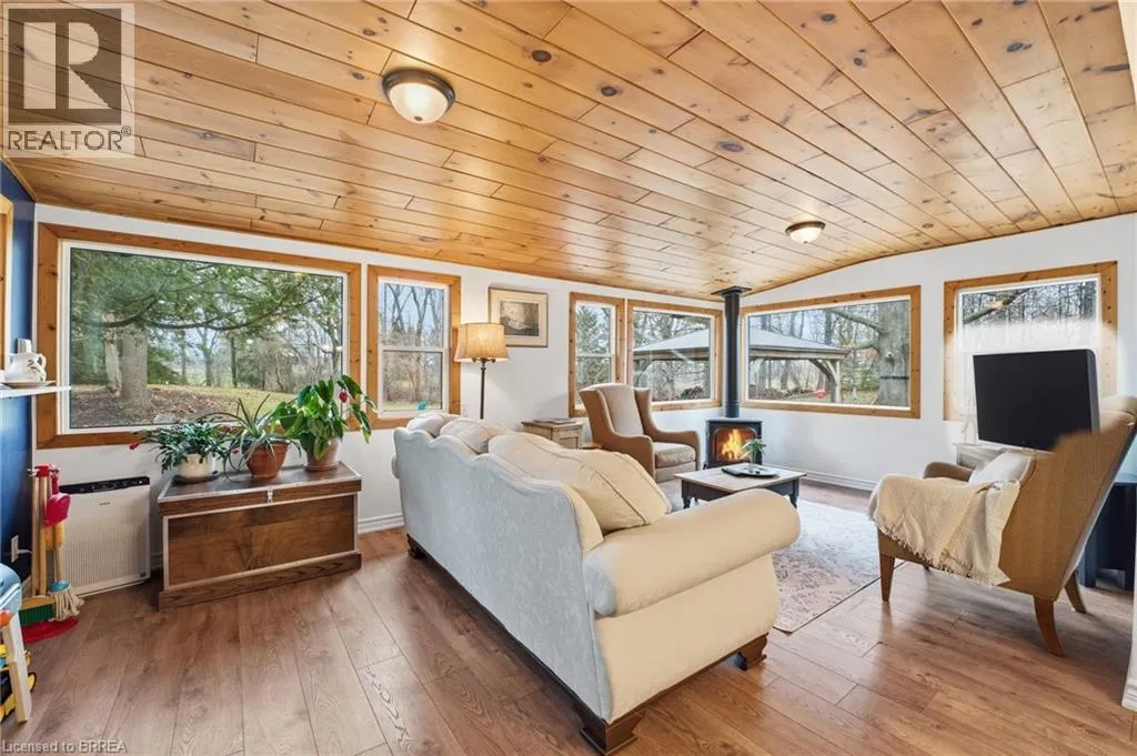 Lynden Rd between Garden Ave. and McMillan Rd Set on a beautiful 1-acre lot, this charming 1.5 storey home with garage and barn offers a rare blend of privacy and convenienceâjust two minutes to highway access and city amenities. Surrounded by mature trees and gently rolling landscape, the setting is peaceful and private. Inside, the home offers 3 bedrooms, 2 bathrooms, and 1,672 sq ft of living space with ample storage. The main floor features a dining room with original pine plank flooring, a recently refinished kitchen, 4-piece bath, two bedrooms, laundry/mudroom, and a bright four-season sunroom with natural gas fireplace. Upstairs includes a private primary bedroom, office, and 3-piece bathâideal for work-from-home or a quiet retreat. Enjoy outdoor living with a patio, gas BBQ hookup, and new gazebo, all set against stunning natural views. The barn could locate your home-based business or be converted to an Accessory Residential Unit for family members - plenty of options here. A rare opportunity to own a turn-key home on a private acre in a desirable location. (id:27476)