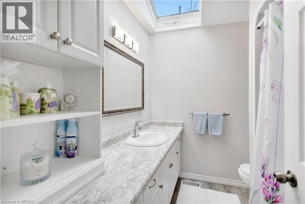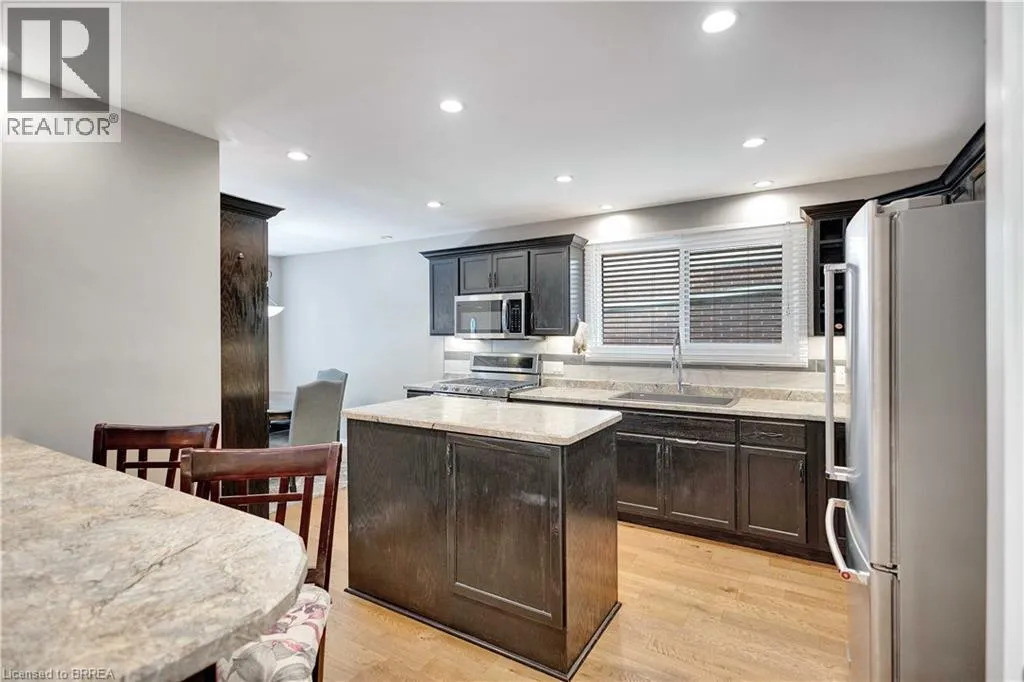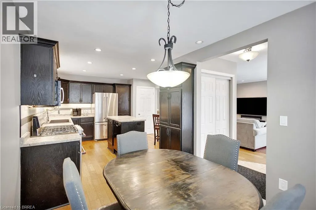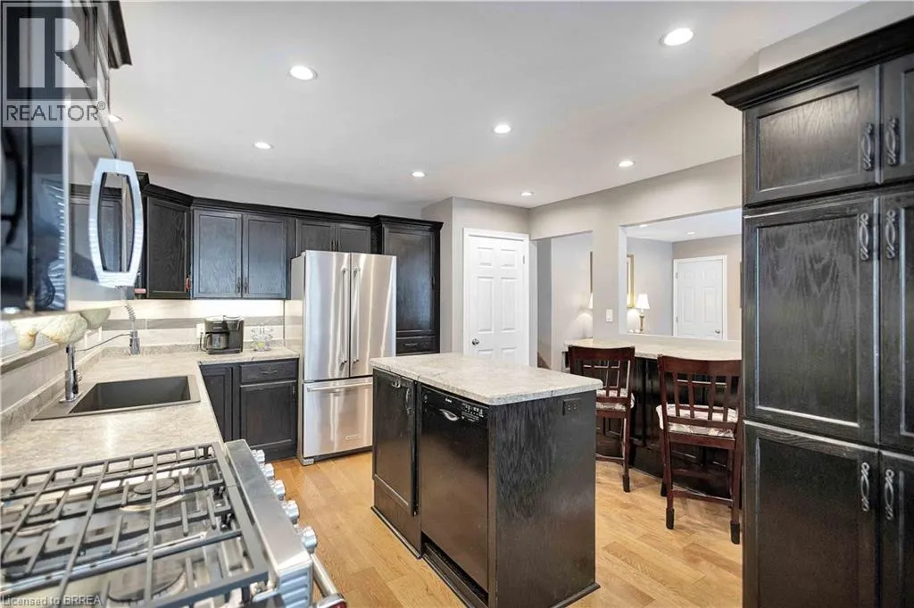 403 Eastbound or Westbound, Exit Paris Road towards Downtown Brantford (South) Property is on the left just before Tollgate Road. Tollgate Road turn right onto Paris Road, property is on the right after Condo Building. Location, Location, Location!! Within 1 minute to Hwy 403, Welcome to 170 Paris Road, a beautiful Backsplit with 3 bedrooms, 2 baths. Extended covered front porch offers plenty of room to sit out day or evening. Once inside you are welcomed into a large living room area with a huge bay window allowing for an abundance of natural light. Completing the main floor area is a modern eat-in kitchen with new cabinetry and updated countertops along with a huge island and loads of storage. Fridge and Stove are Stainless steel making this kitchen truly a delight. Second level offers 3 spacious bedrooms and a 4 pc bath. The lower level is surprisingly spacious with a huge rec room area, laundry area, and 3 pce bath. The door across from the laundry leads up to the garage so this area can also be turned into an in-law suite or potential income area. Enjoy the spacious backyard with a Gazebo that stays with the home and a Hot Tub. The backyard is partially fenced with plenty of room to accommodate an inground pool or create your own backyard oasis. Shed is in the back right corner of property with no electricity. This home has plenty of room for 4+ cars in the driveway. Golf, shopping, schools, trails are all within minutes, the home has been meticulously cared for and it shows. Book your viewing today. (id:27476)