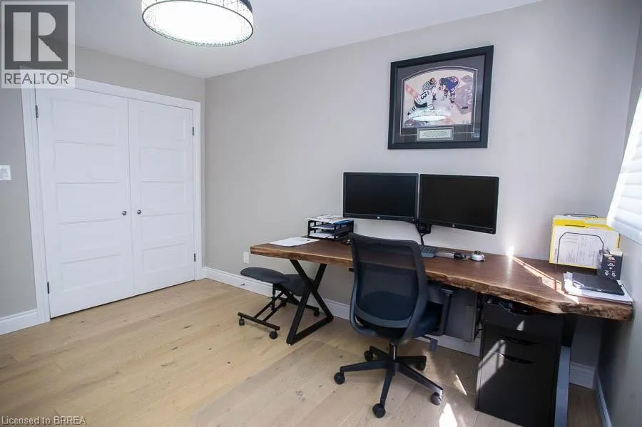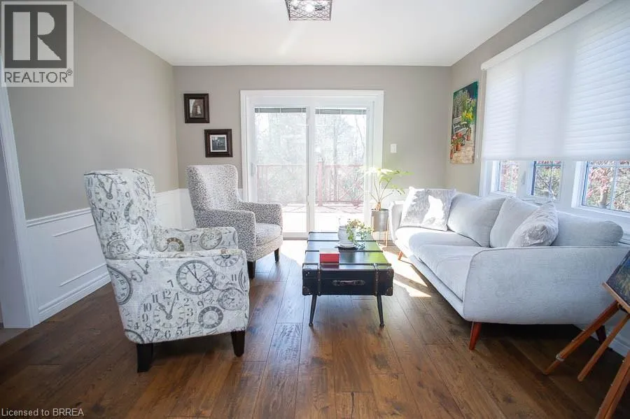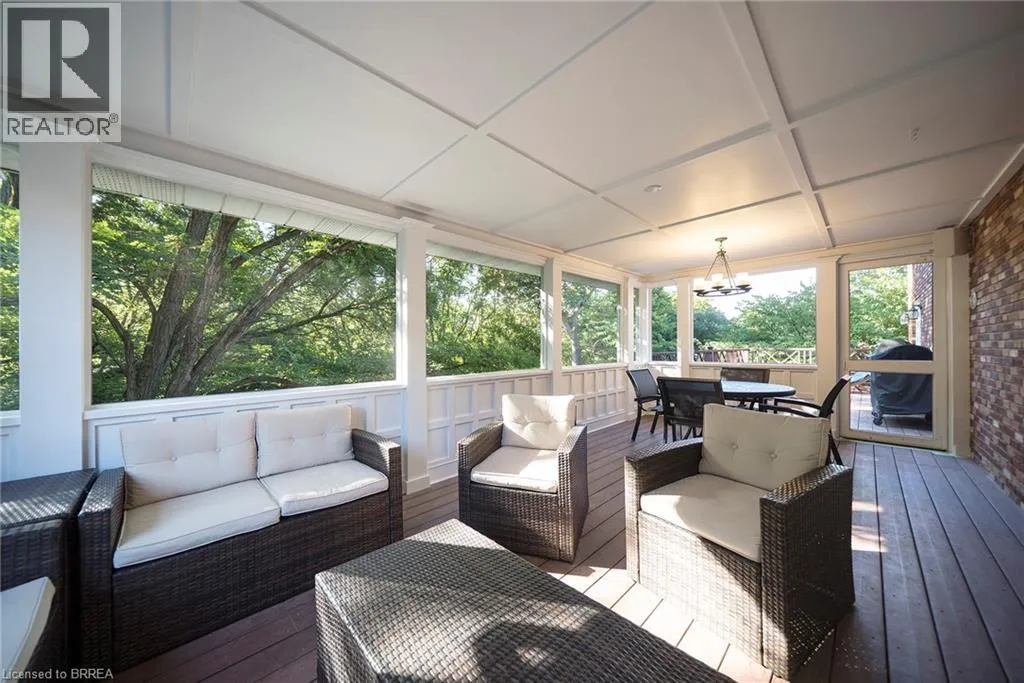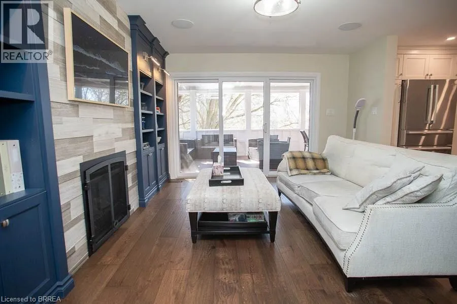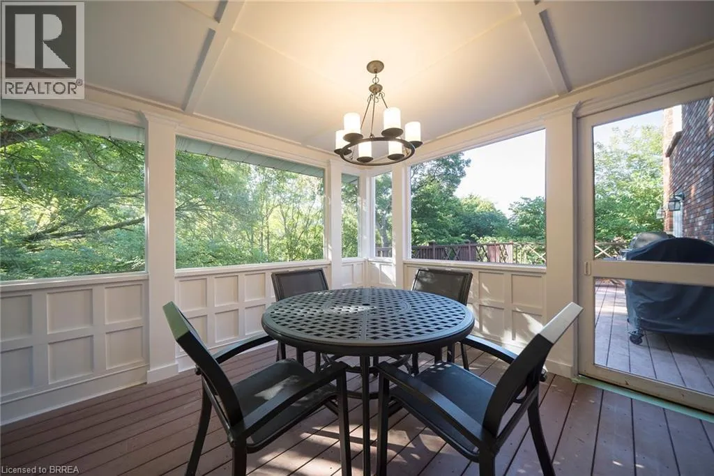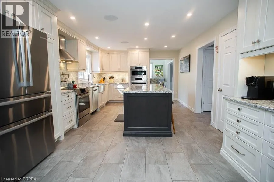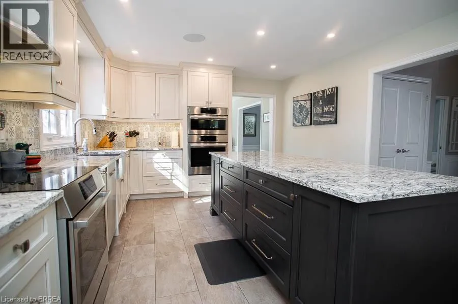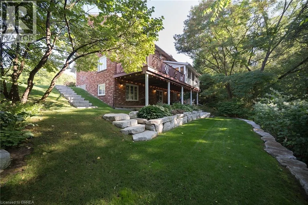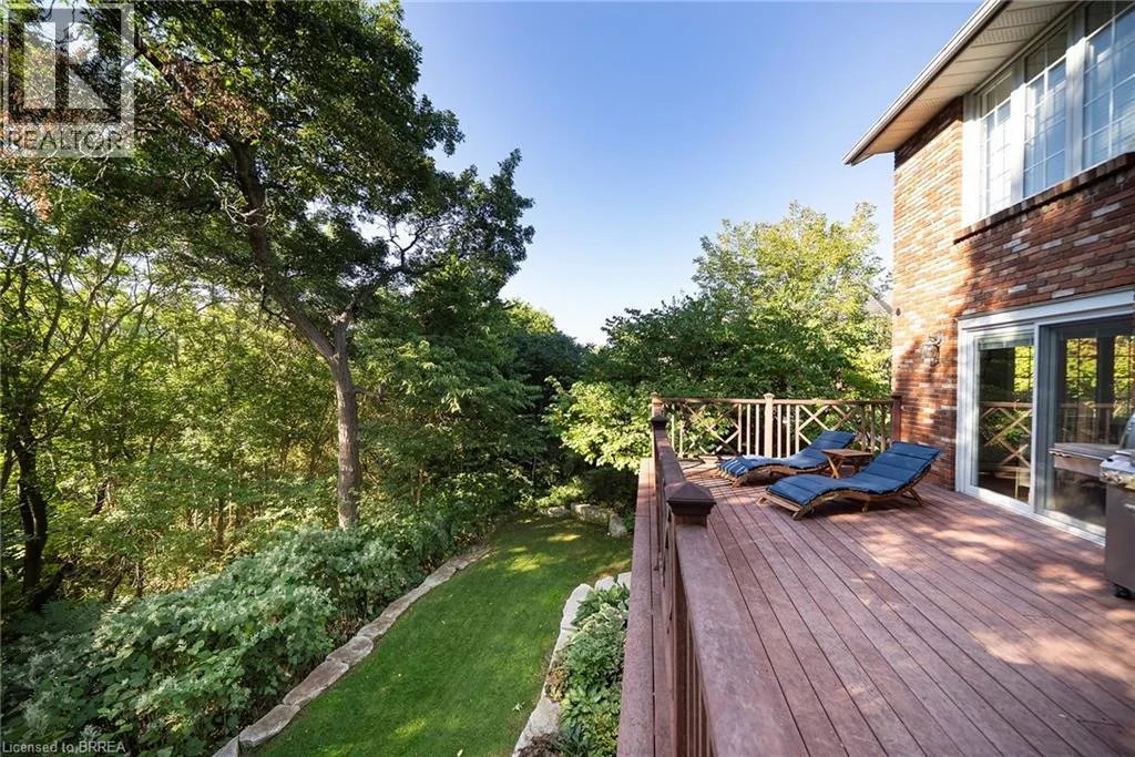 Ava Road to Scarfe Gardens Tucked away on a quiet cul-de-sac in prestigious Ava Heights, this spectacular 3+1 bedroom, 3.5 bathroom home offers the perfect blend of luxury, space, and lifestyle. Ideally located just minutes from highway access, the Grand River, golf courses, scenic trails, and everyday amenities, this is a home that truly delivers on both convenience and setting. From the moment you arrive, the impressive curb appeal is evident, featuring a stamped concrete driveway, mature landscaping, and a double-car garage. Inside, you are welcomed by a grand two-storey foyer and a beautifully updated interior featuring engineered hardwood flooring, elegant finishes, and thoughtful upgrades throughout. The formal living and dining rooms provide an ideal space for entertaining, while the heart of the home is the stunning, fully renovated kitchen, complete with quartz countertops, high-end Bosch appliances, custom cabinetry, and an oversized island designed for gathering. The adjoining family room is warm and inviting, featuring custom-built-ins and a striking gas fireplace, while the sunroom offers a peaceful retreat overlooking the private, tree-lined backyard. With multiple outdoor living spaces, including a composite deck, lower-level patio with hot tub access, and lush landscaping, this home is perfect for enjoying both quiet mornings and hosting family and friends. Upstairs, the spacious primary suite features two walk-in closets and a well-appointed ensuite, while two additional bedrooms and a full bathroom provide ample space for family living. The fully finished basement adds incredible versatility with a large recreation room with a wet bar & gas fireplace, an additional bedroom, a full bathroom, and a bonus space ideal for hobbies. Extensively updated and meticulously maintained, this home offers exceptional value in one of the areaâs most sought-after neighbourhoods. A rare opportunity to enjoy refined living in a truly special setting. (id:27476)