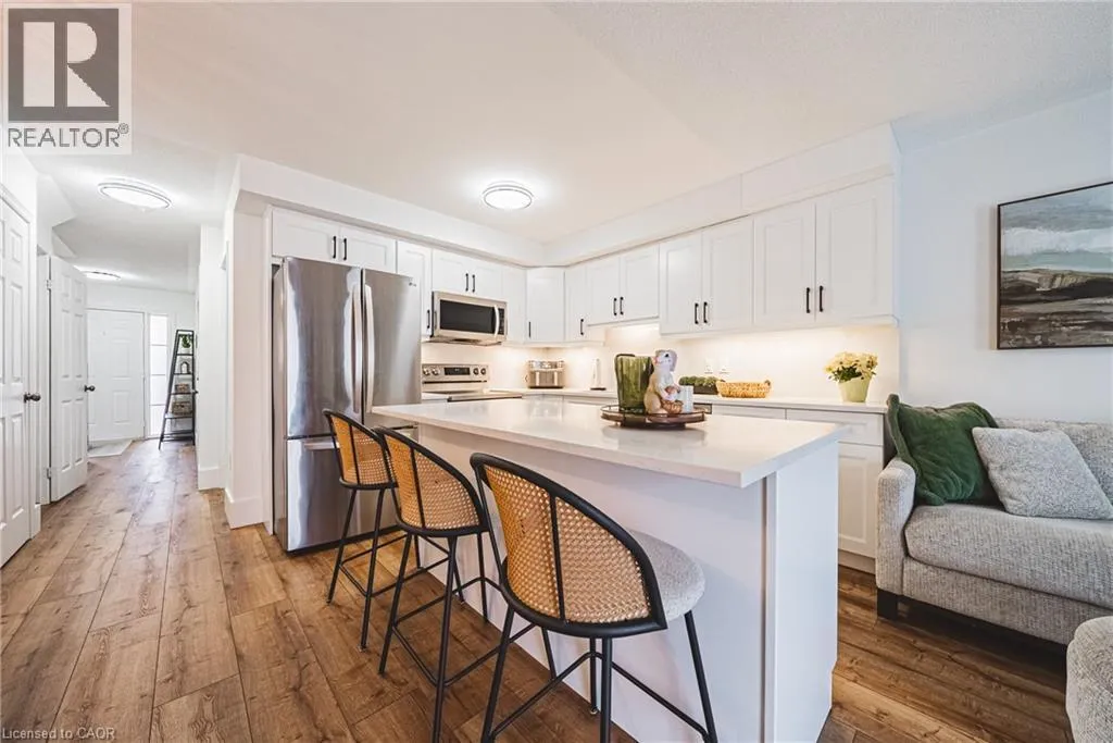 Elgin St & Wayne Gretzky Pkwy Renovated 3 bedroom, 2.5 bathroom townhome located in a quiet, family friendly complex, walking distance to shops and just minutes to the 403. Open concept main level. Spacious kitchen with white cabinets, quartz counter-tops, huge pantry, stainless steel appliances and a centre island/breakfast bar. Walk out from the family room to the private fenced yard with direct gas hook up for your bbq. Perfect for entertaining. Main floor power room. New flooring through out the entire home. Upstairs boasts 3 generous sized bedrooms, 2 full baths and a craft or office nook. Master retreat features a walk in closet and 4 pc ensuite. Newly fully finished basement perfect for extended family. Attached garage with inside entry and built in shelving. Custom driveway with patterned concrete border. Freehold with low common element maintenance fee. Very well maintained complex with lots of visitor parking. Turn key and sure to impress. Book your private viewing today. (id:27476)