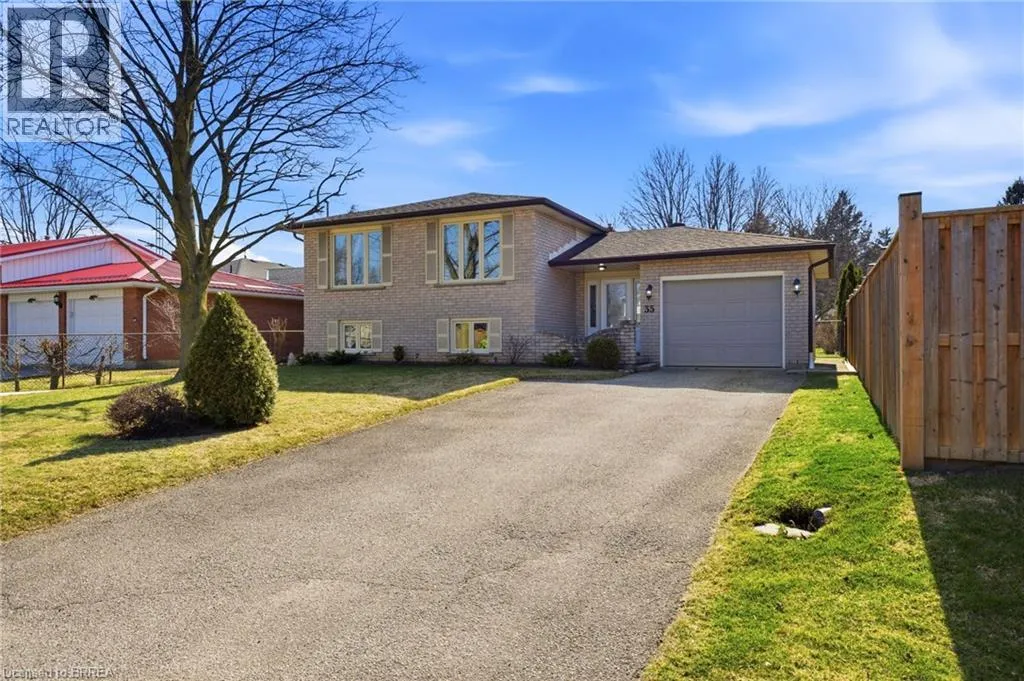 Dunsdon Street Welcome home to 35 Bernard Ave., Brantford. In the mature and desirable Greenbrier community, just steps to Wilkes Park, a short distance to Greenbrier and St. Leo's elementary schools. Only minutes to the 403 and all of Brantford's north end amenities like Costco and the Lynden Park Mall. Offered for the first time on an oversized lot! Immaculately maintained 3+ 2 bed raised ranch with 2 full baths. Custom built with a wide and spacious front foyer that leads to a beautiful sun room in the oversized backyard. Upgrades have been made to the kitchen and flooring, but more recently all new carpet laid in basement (2026). Stay cozy in the large basement rec room with gas fireplace! The furnace was inspected and maintained annually and A/C biannually. As well as vinyl windows throughout! The garage provides easy access to the backyard with garage doors at front and back. A french drain was installed coupled with a sump pump in 2022. Shows A+ come see it for yourself today! (id:27476)