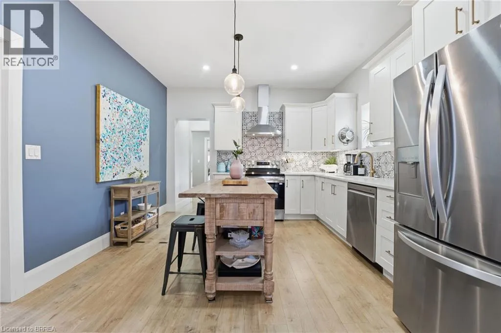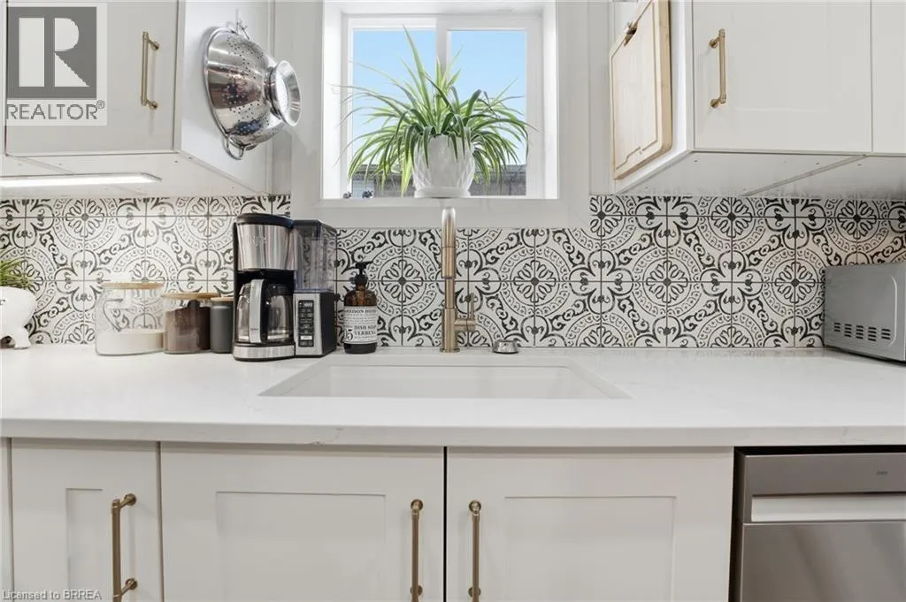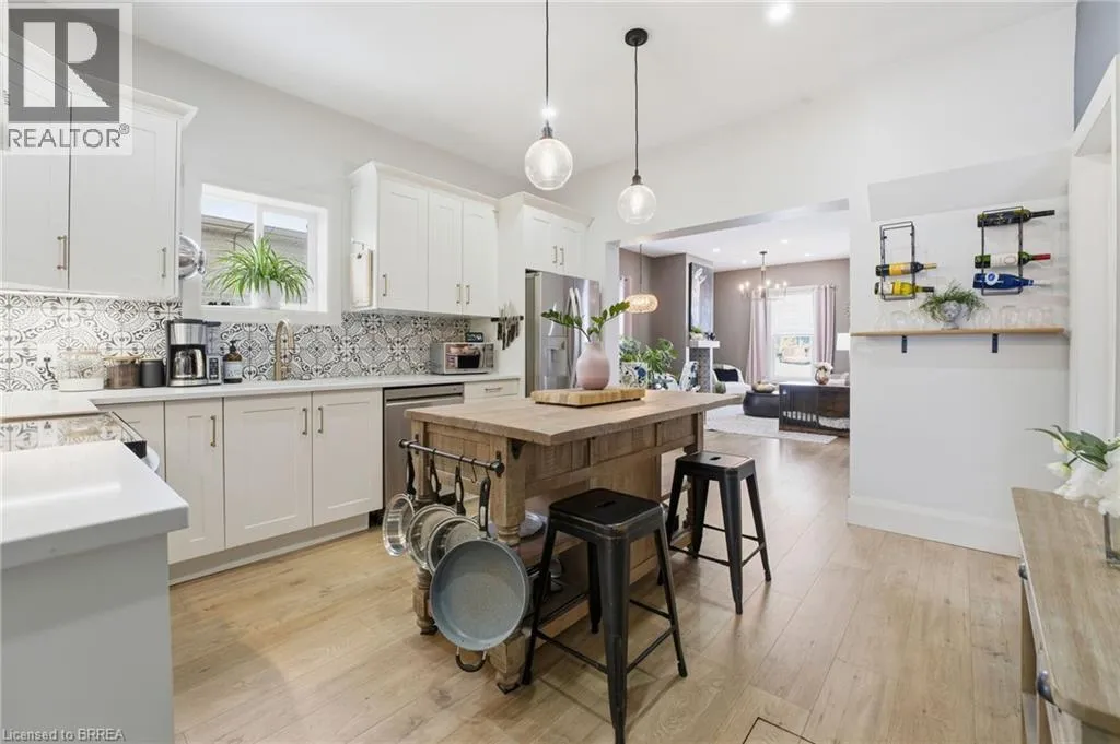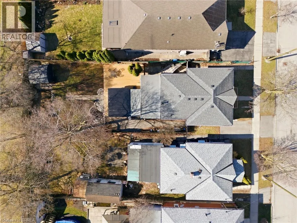 Located between Mt Pleasant St. and Catherine Ave. Prepare to be impressed. This beautifully updated 3-bedroom, 1.5-bath bungalow is nestled in a family-friendly neighbourhood and truly checks all the boxes â with a flexible, quick closing available. Bright, open living spaces flow into a stunning eat-in kitchen featuring quartz countertops, backsplash, and brand-new appliances, complemented by a spa-like 4-piece bathroom. Major updates include a new furnace, roof, siding, soffit, fascia, and eaves, along with thoughtful upgrades throughout. Step outside to a fully fenced yard with hardscaping, pond, large deck, and covered patio with metal roof â an ideal space for entertaining or relaxing. Perfect for first-time buyers, downsizers, or investors, this move-in-ready home is conveniently located close to schools, universities, shopping, hospital, casino, trails, the Grand River, and offers easy access to HWY 403. Recent highlights (since 2024): custom walk-in closet, double doors to the backyard, dedicated laundry room, covered deck, and gas line for BBQ. (id:27476)
