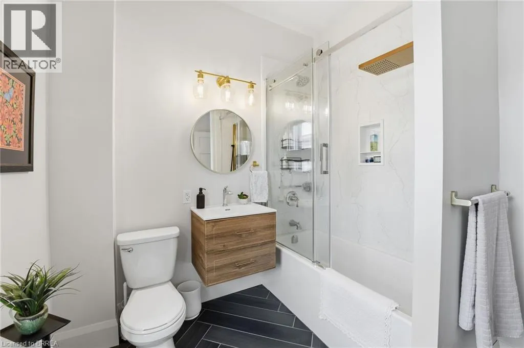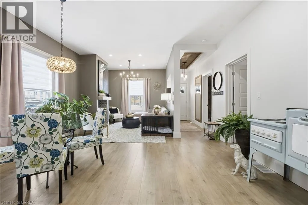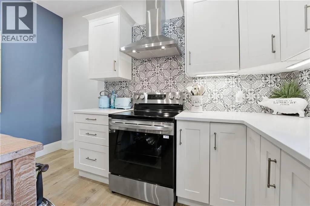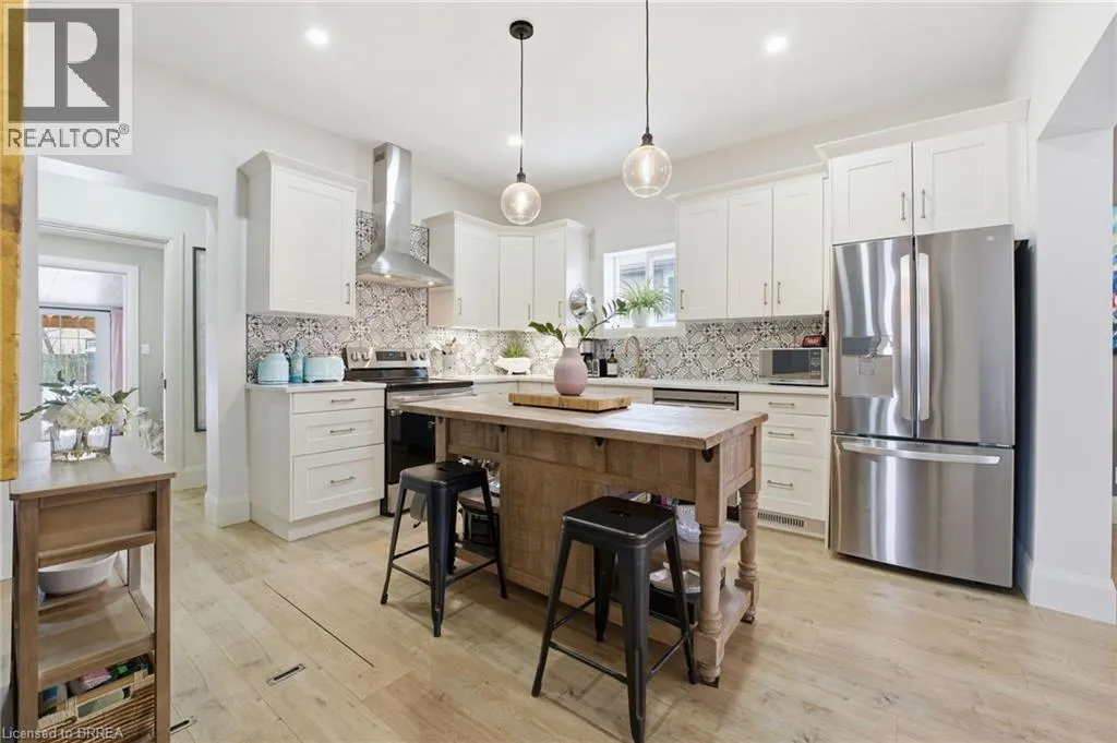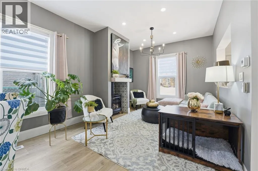 Located between Mt Pleasant St. and Catherine Ave. Prepare to be impressed. This beautifully updated 3-bedroom, 1.5-bath bungalow is nestled in a family-friendly neighbourhood and truly checks all the boxes â with a flexible, quick closing available. Bright, open living spaces flow into a stunning eat-in kitchen featuring quartz countertops, backsplash, and brand-new appliances, complemented by a spa-like 4-piece bathroom. Major updates include a new furnace, roof, siding, soffit, fascia, and eaves, along with thoughtful upgrades throughout. Step outside to a fully fenced yard with hardscaping, pond, large deck, and covered patio with metal roof â an ideal space for entertaining or relaxing. Perfect for first-time buyers, downsizers, or investors, this move-in-ready home is conveniently located close to schools, universities, shopping, hospital, casino, trails, the Grand River, and offers easy access to HWY 403. Recent highlights (since 2024): custom walk-in closet, double doors to the backyard, dedicated laundry room, covered deck, and gas line for BBQ. (id:27476)