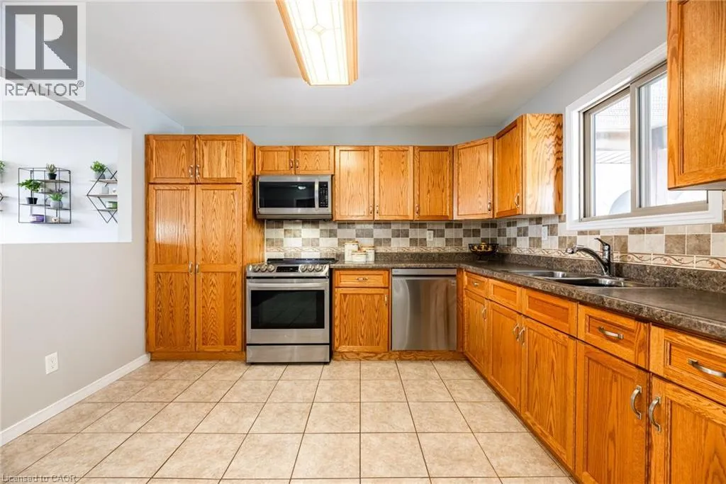 Elgin St to General St to Mission Road Welcome to this beautifully maintained raised bungalow offering the perfect blend of comfort, space, and convenience. Designed for easy living, the main level features two generous bedrooms and a full ensuite-privilege bath. The bright, open-concept kitchen and living area is enhanced by expansive windows and a stunning vaulted ceiling, creating an airy, light-filled atmosphere that feels both warm and inviting. The fully finished lower level extends your living space with two additional bedrooms, a second full bath, dedicated laundry area, and a spacious recreation roomâideal for guests, teens, hobbies, or a home office setup. Ideally situated on a premium lot backing onto a serene, private treed backdrop, this property offers exceptional privacy and a peaceful natural setting rarely found. The generous yard provides ample space for children and pets to roam and play, host gatherings, or simply relax and unwind outdoors. Meticulously maintained inside and out, this home is truly move-in ready. Complete with a double garage and convenient inside entry, it offers both practicality and comfort. An excellent opportunity for right sizer buyers or anyone seeking the ease of convenient one-floor living with the added benefit of finished lower-level space. (id:27476)