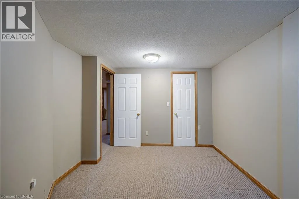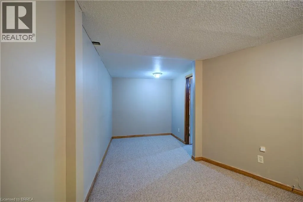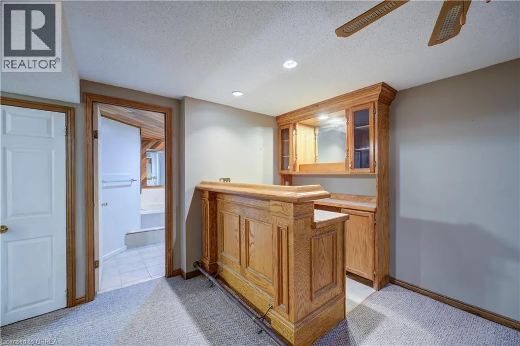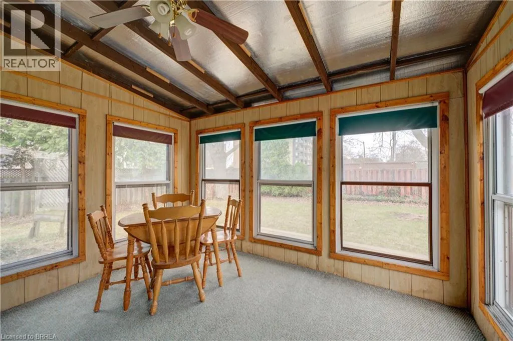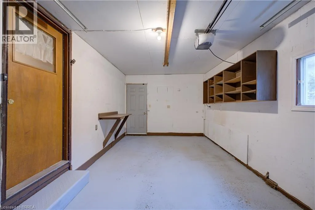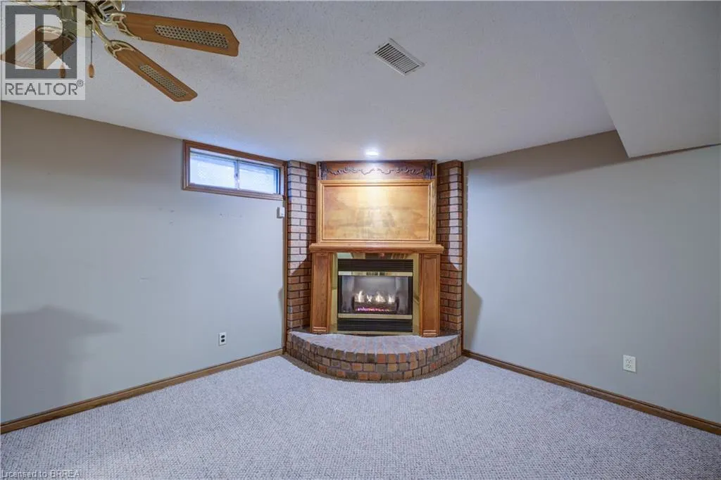 One story bungalow with attached garage backing onto Green space. Great north end location, with excellent highway 403 access as well as a quick drive to all of the north ends amenities. Main floor just painted throughout, boasts bright living room, eat-in kitchen with new counter tops, 3 bedrooms with fresh baseboards , 4 piece bathroom, as well as a sunroom. Lower level has large open family room with wet bar and gas fireplace, 3 piece bathroom with large soaker jet tub, and a potential fourth bedroom as well as utility room with laundry. Fully fenced rear yard with deck off of sunroom. Eavestroughs are equipped with gutter guards for added convenience and low-maintenance exterior care. Property is being sold as is, where isâ. (id:27476)