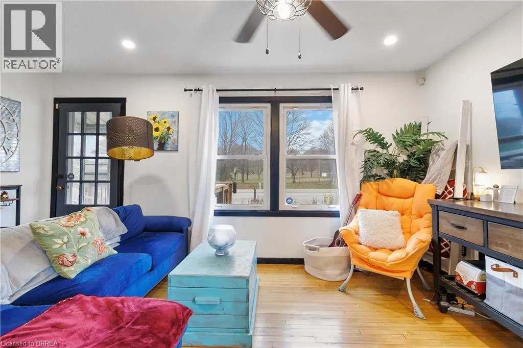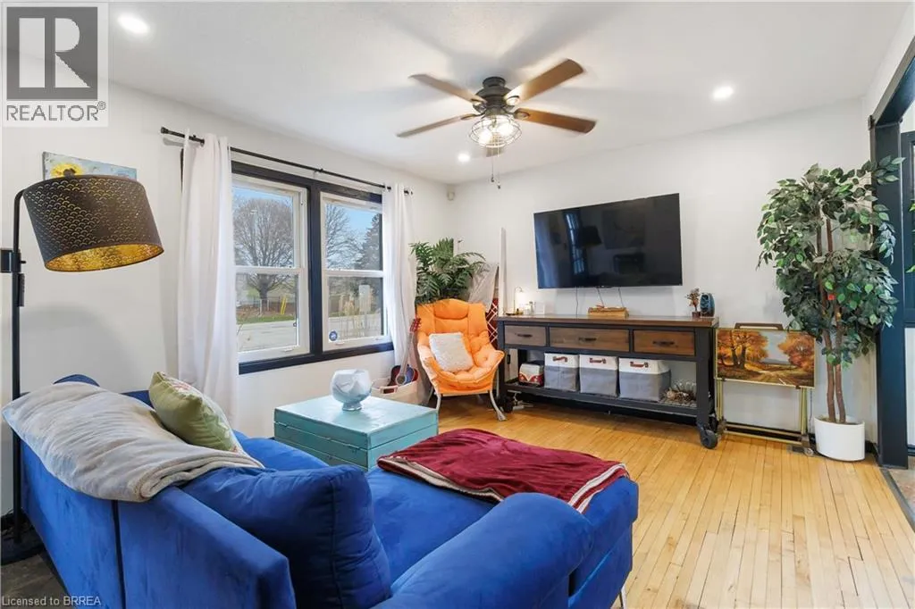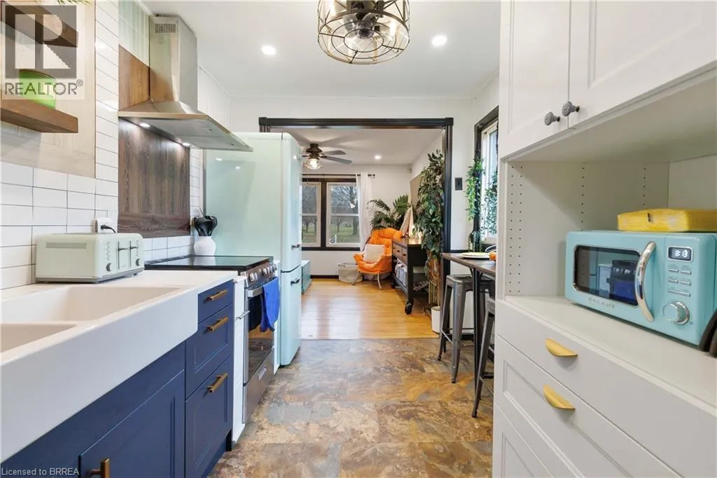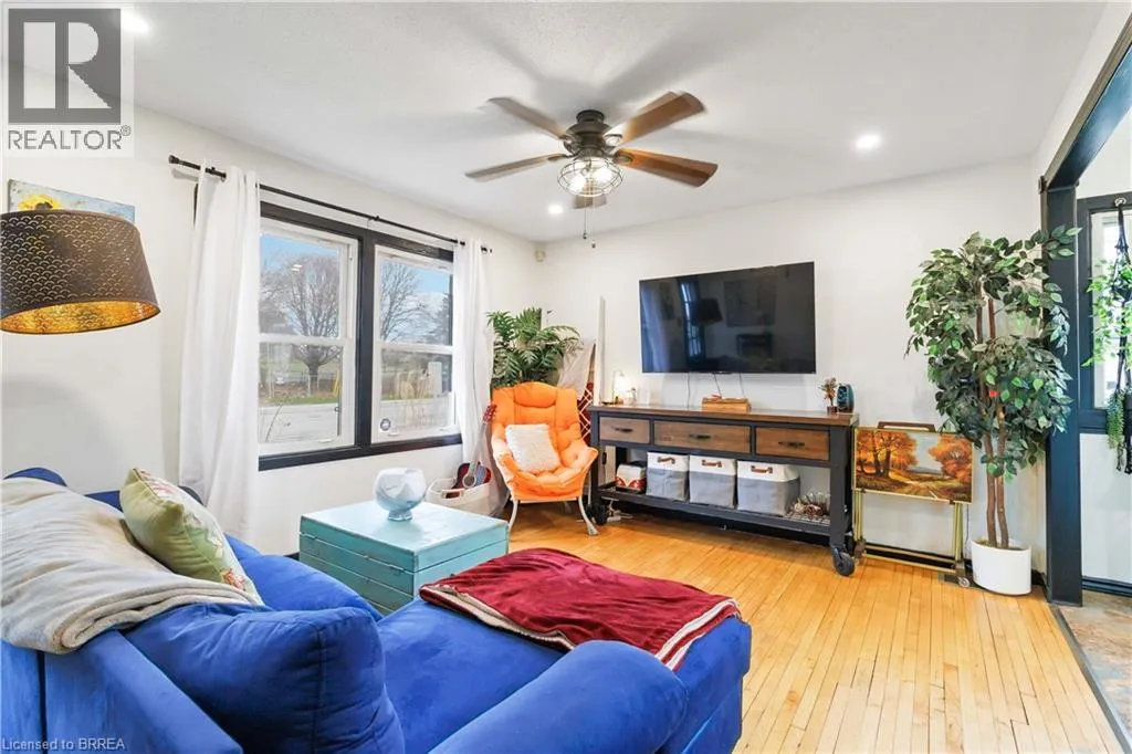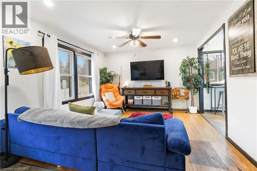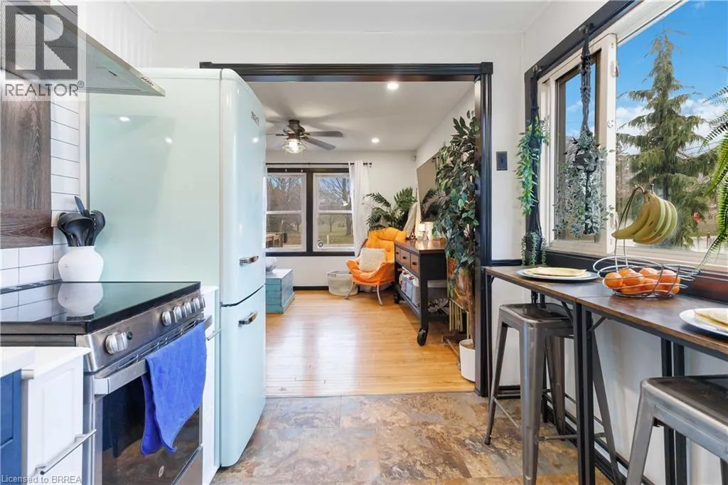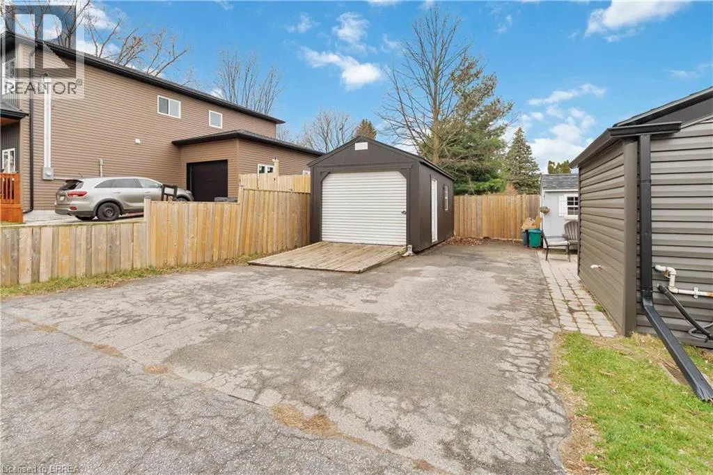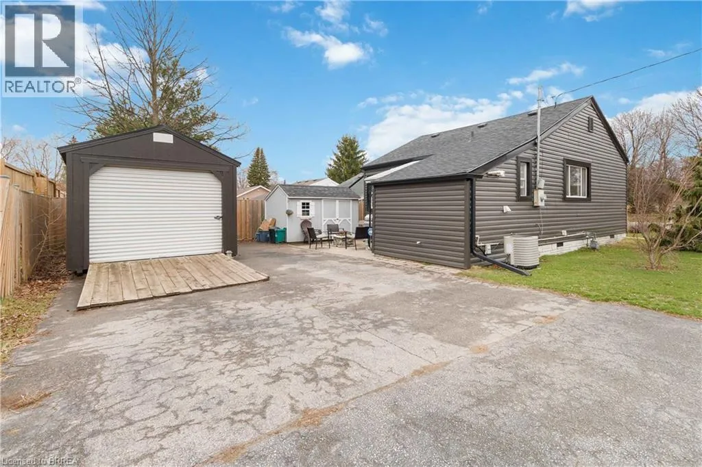 South on Wayne Gretzky Pkwy. from the 403, then West on Elgin St. One floor living in a single detached home with all the new things and large garage! This home is perfectly priced for the first time buyer or someone who is looking to downsize and would like main floor living. This is a cozy home that has had many upgrades done in the last 5 years. It has a new front deck (2022) to drink your morning coffee on and enjoy your beautiful perennial flower garden in the summer. Don't worry about your roof because it was replaced in 2018 along with the central air unit and the 4 piece bathroom was renovated in 2022. A new kitchen in 2024 along with new kitchen appliances, fresh paint and new siding on the house completing the transformation! The indoor space is carpet free with some original hardwood floors and the outdoor space is easy to maintain, featuring a seating area, shed, lots of parking and your own detached garage which will fit a single vehicle and a whole lot more!. Don't miss out on this exceptionally located home just minutes from shopping and easy access to Hwy. 403. Nothing to do but move in and make it your own... Come view for yourself! (id:27476)