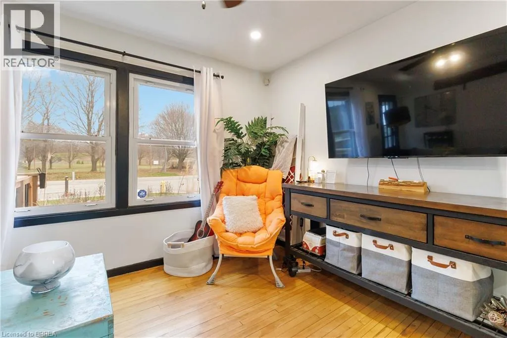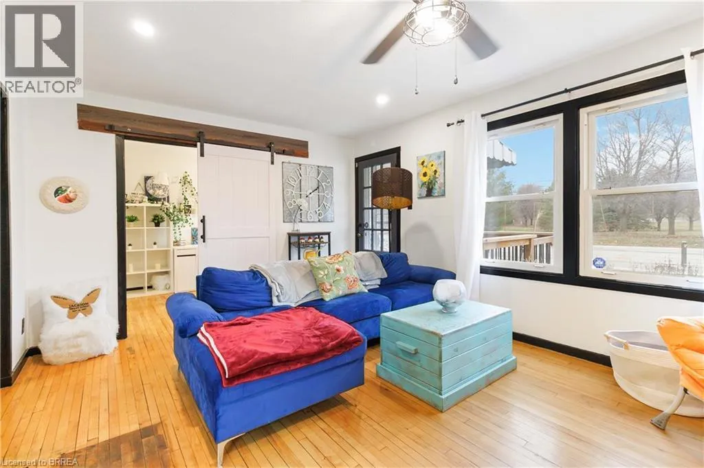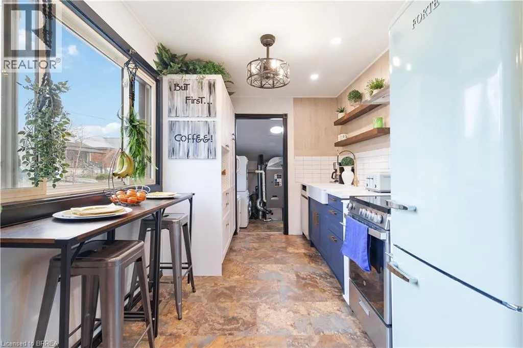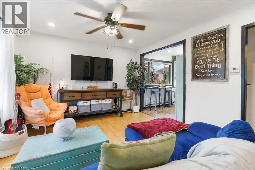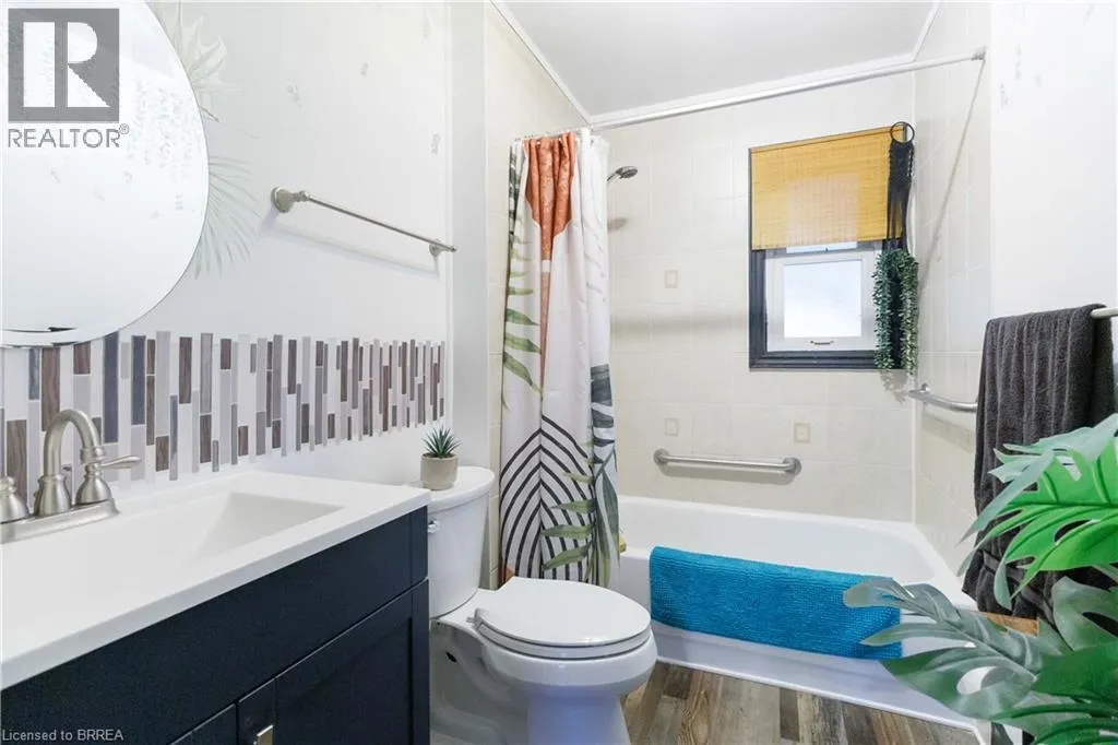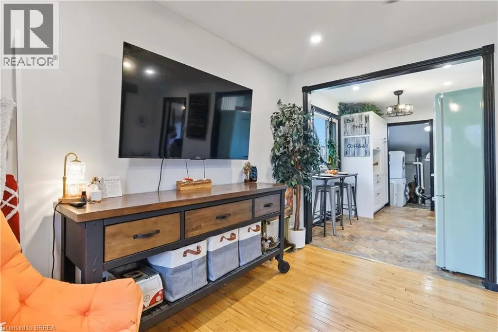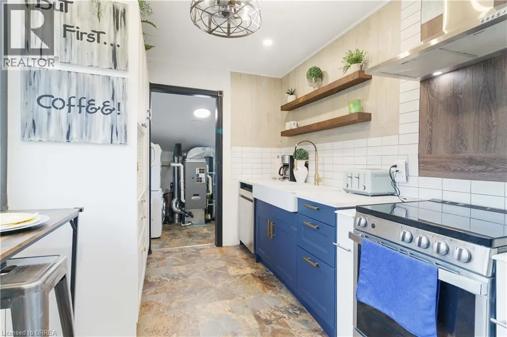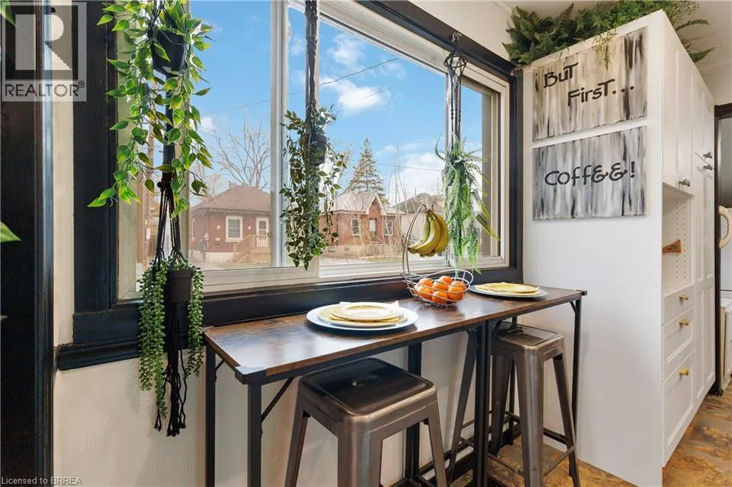 South on Wayne Gretzky Pkwy. from the 403, then West on Elgin St. One floor living in a single detached home with all the new things and large garage! This home is perfectly priced for the first time buyer or someone who is looking to downsize and would like main floor living. This is a cozy home that has had many upgrades done in the last 5 years. It has a new front deck (2022) to drink your morning coffee on and enjoy your beautiful perennial flower garden in the summer. Don't worry about your roof because it was replaced in 2018 along with the central air unit and the 4 piece bathroom was renovated in 2022. A new kitchen in 2024 along with new kitchen appliances, fresh paint and new siding on the house completing the transformation! The indoor space is carpet free with some original hardwood floors and the outdoor space is easy to maintain, featuring a seating area, shed, lots of parking and your own detached garage which will fit a single vehicle and a whole lot more!. Don't miss out on this exceptionally located home just minutes from shopping and easy access to Hwy. 403. Nothing to do but move in and make it your own... Come view for yourself! (id:27476)