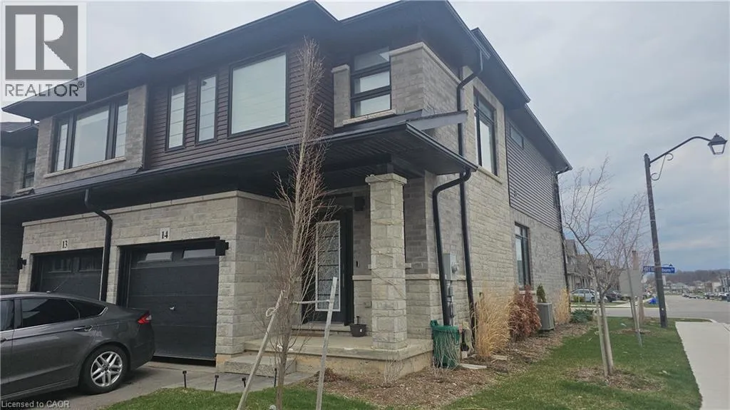 Blackburn Dr & Shellard Lane Stunning West Brant End-Unit Townhome for Lease. Welcome to 461 Blackburn Drive, Unit #14! This modern end-unit townhouse offers the feel of a detached home with 3 spacious bedrooms, 3 bathrooms, and over 1,600 sq ft of elegant, low-maintenance living space. Property Highlights : Bright & Open: Step into a sun-soaked main floor featuring 9-ft ceilings, oversized windows, and rich laminate flooring. Gourmet Kitchen: A showstopper featuring stainless steel appliances, quartz countertops, a large center island, and a stylish tile backsplash. Primary Retreat: A relaxing oasis complete with a walk-in closet and a private 3-piece ensuite. Flexible Space: Two additional bedrooms are perfect for growing families, guests, or a home office. Everyday Convenience: Enjoy the ultimate ease of upper-level laundry. Outdoor Living: Sip your morning coffee or unwind in the evening on your private backyard patio. Parking: An attached garage plus a driveway provides effortless parking for two vehicles. The Neighbourhood: Nestled in a quiet, family-friendly pocket of West Brant, you are just minutes away from beautiful parks, excellent schools, shopping, and all your everyday conveniences. (id:27476)