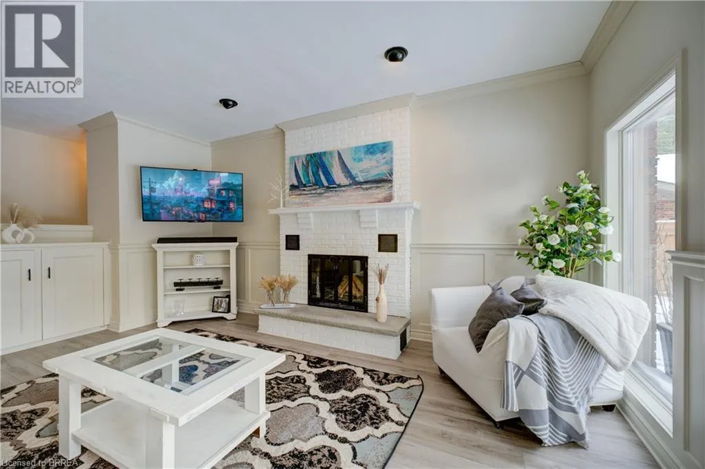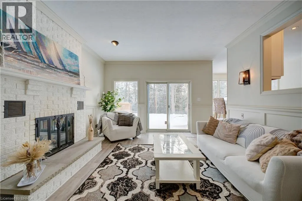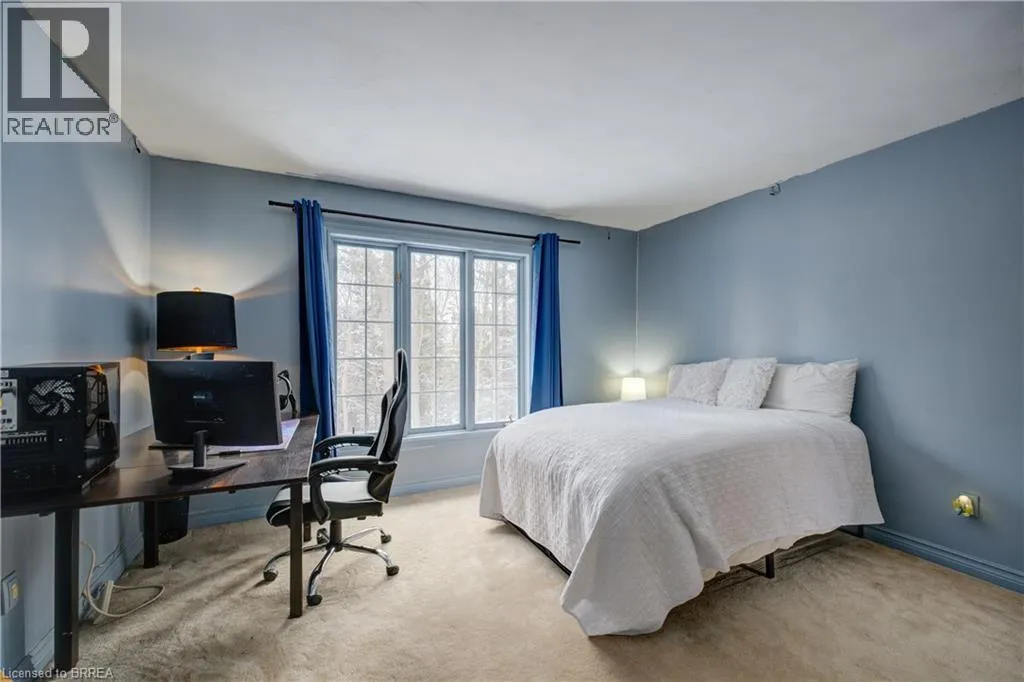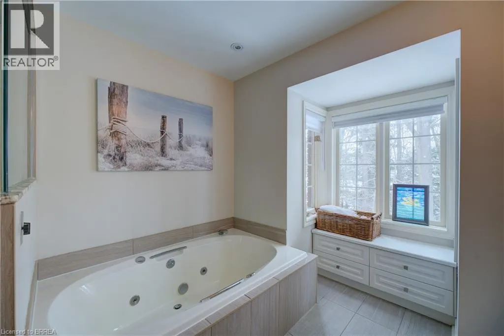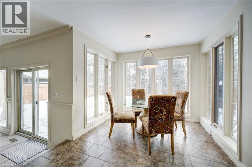 Ava Rd. and Scarfe Gardens Prestigious Court location close to Brantford Golf and Country Club. Private ravine lot with newer inground pool. Grand entranceway with spiral staircase and vaulted ceilings. Front sitting room with large window and natural wood fireplace. Main floor office with beautiful wood inlays and built-in shelves and cabinets. Large formal dining room with bay window overlooking rear wooded area. Newly renovated kitchen, eat-in area with three walls of windows overlooking inground pool. Sunken main floor family room with natural wood fireplace. Beautiful main floor, laundry room with built-in overhead cabinets and lowers. Upper level: Four spacious bedrooms. Large primary suite with bay window overlooking ravine, recently renovated 4pc bathroom with jet, soaker tub, and glass shower, his and her sinks and walk-in closet. Second level: 4pc bathroom recently renovated. Large renovated bright lower level. Rec room with gas fireplace and pool table area, separate home gym and three-piece bathroom. Fully fenced rear yard with newer, inground pool 2023, hot tub with gazebo and stamped concrete; all overlooking picturesque private wooded ravine. (id:27476)