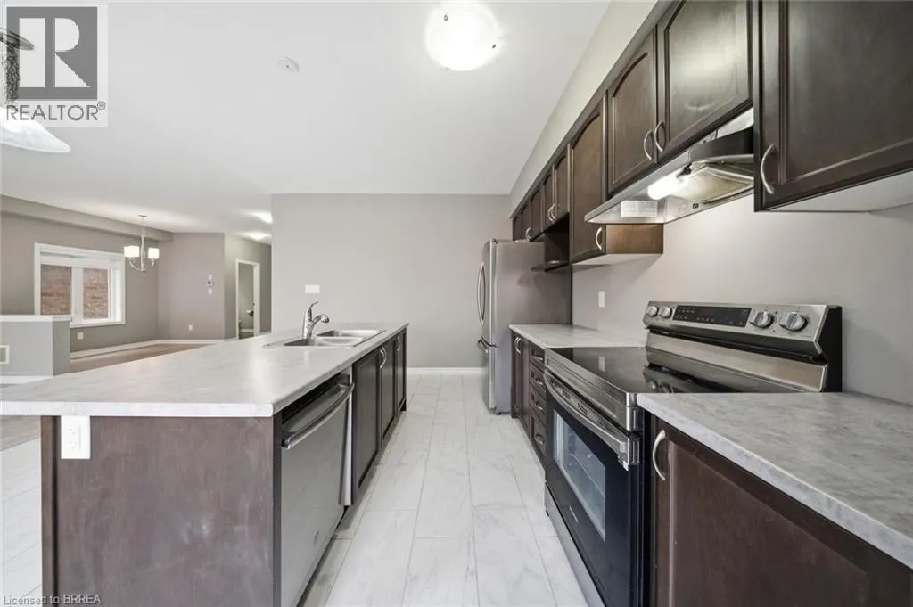 Garden Ave to Bilanski Farm Rd Stunning all-brick detached home in the great neighbourhood of Brantford. This well maintained home features spacious 4 bedrooms and 2.5 bathrooms. Completely carpet free home. 9 Feet ceiling on Main Level. Open concept living room/Dining room with beautiful spacious kitchen with S/S appliances. Second Level features master Bedroom with on-suite bath and two walk-in closets and 3 additional good size bedrooms. Massive laundry room on second level for added convenience. Unfinished large basement is perfect for future customization. Double garage and double wide driveway provide 4 parking spaces. Great location for commuters, minutes from the highway. Walking distance to trails! Close to HWY 403, schools, transit, shopping malls and many other amenities. (id:27476)