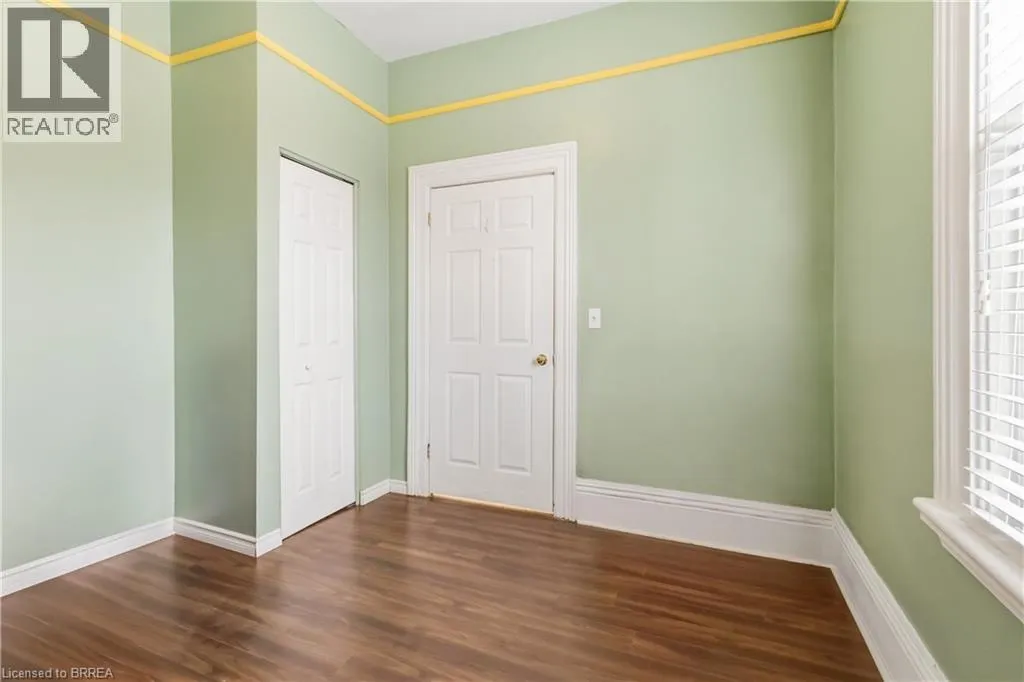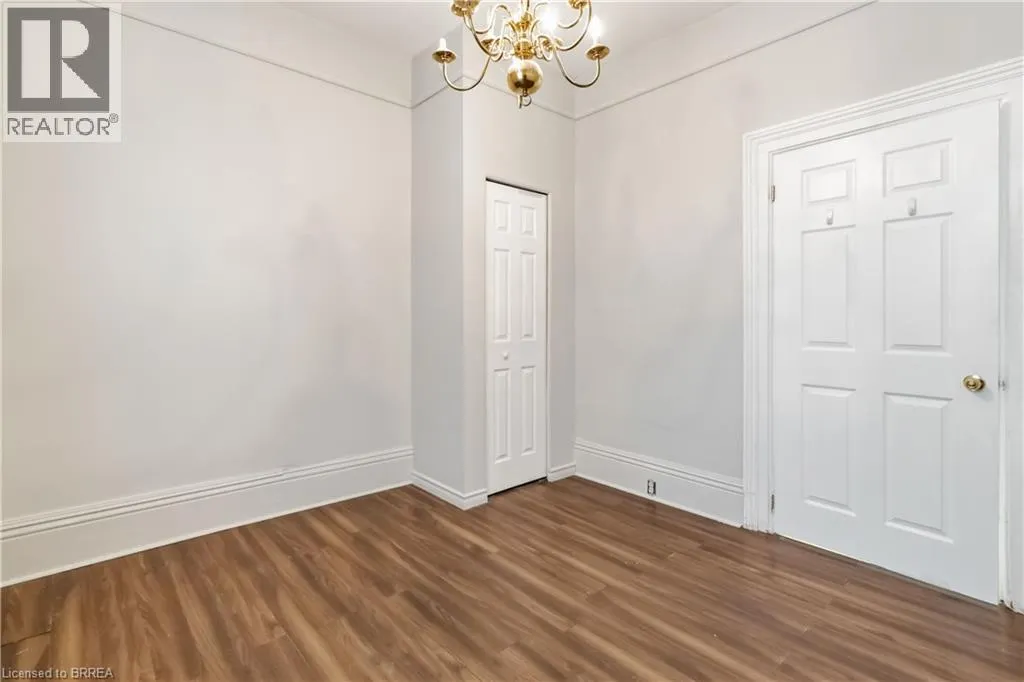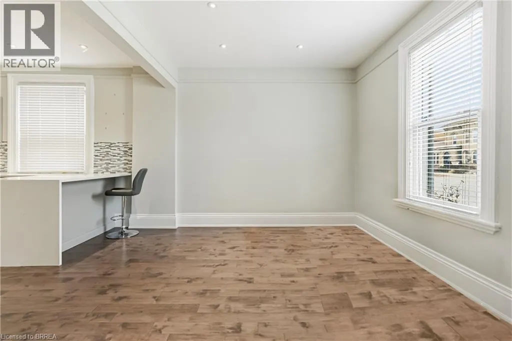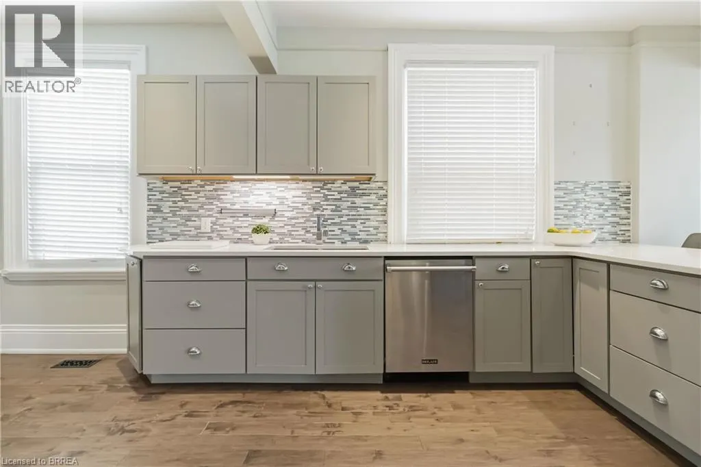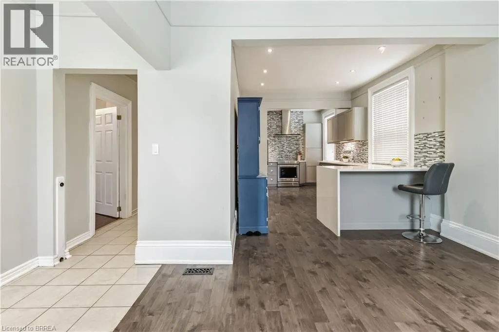 403 WB, Exit King George Rd, make a left, make another left at the light of King George Rd. continues to St.Paul, make a left onto Brant Ave. Property on your right. ESTATE SALE â Located in the highly desirable Henderson/Holmedale area. Ideal for first-time buyers, those looking for accessible, one-floor living, or investors. Architecture tells a story of character and charm in this classic Brantford-bricked cottage, presenting one of the most desirable floorplans, complete with 3 bedrooms and 1.5 baths. Spanning over 1,400 square feet, this carpet-free home welcomes you with a foyer that seamlessly flows into the family room, accentuated by large windows throughout. This inviting space extends into the remodeled kitchen, featuring white-toned quartz countertops with waterfall edge, deep grey shaker cabinetry, a pantry, and stainless steel appliances with a double sinkâoffering both functionality and style. With ceilings over nine feet high throughout much of the interior, the home is enriched with traditional baseboards that enhance its timeless charm. The home features two generously sized bedrooms off the living area, with a two-piece bathroom conveniently located nearby. A spacious four-piece bathroom with room to flourish sits adjacent to main floor laundry, enhancing the home's practicality. The side door entry opens into a versatile space ideal for a mudroom or office. At the rear of the home, you'll find a third bedroom alongside a three-season room, with French doors leading to the yard. A fully fenced yard ensures privacy, complete with a garden shed and a partially enclosed pergola. An unfinished basement provides additional storage. This home is ready for your vision and personal touches, offering an excellent opportunity to further enhance its charm. A two-car driveway and close proximity to amenities, schools, transit, hospital, highway access, and so much more. Do not miss the opportunity to view this homeâyour story starts here. Timeless charm is knocking⦠will you answer? (id:27476)