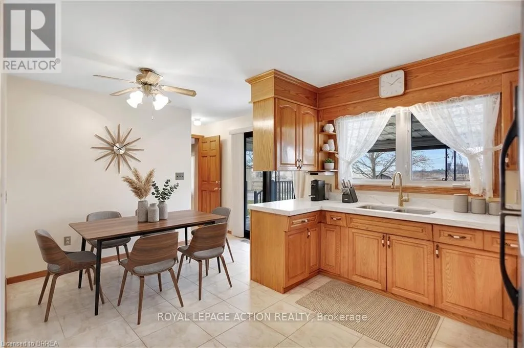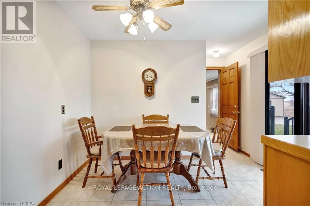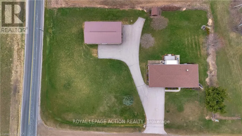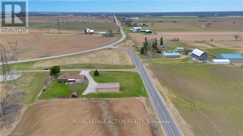 Cross Streets: Hwy 54. ** Directions: Brant County Road 18 to Hwy 54, turn right on No 6 School Road. Looking for your dream country property with a shop? This move-in-ready 1,310 sq. ft. brick bungalow with an attached double car garage sits on a beautiful 1-acre lot and features an incredible 56' X 31' workshop. The perfect setup for hobbyists, tradespeople, or anyone who needs extra space to work, store, or build (Shop has hydro & water, built in 2009). Lovingly owned and meticulously maintained by the same family for 40 years, this property offers a rare combination of land, functionality, and value in a highly desirable location-just minutes to Highway 403 for easy access to the city and surrounding areas. With major updates already completed, this is a unique opportunity you won't want to miss! Inside features 3 bedrooms, a 4-piece bathroom, and a spacious living room with an updated window (2021) and motorized blinds. The eat-in kitchen and dining area offers sliding doors leading to a covered patio with awning, perfect for outdoor meals and relaxing. A bright sunroom at the rear of the home provides peaceful views of your own private slice of paradise. The full unfinished basement offers excellent potential for additional living space or storage, ready for your finishing touches. Outside is where this property truly shines, the expansive yard provides endless room for gardening, outdoor living, and future possibilities. The standout feature is the impressive 1,653 sq. ft. workshop, this is a dream for anyone needing serious space for tools, projects, and equipment. Updates include: Septic Tank (2016), Shingles (2017) Shop (2009), and updated electrical panel. Some photos are virtually staged. (id:27476)