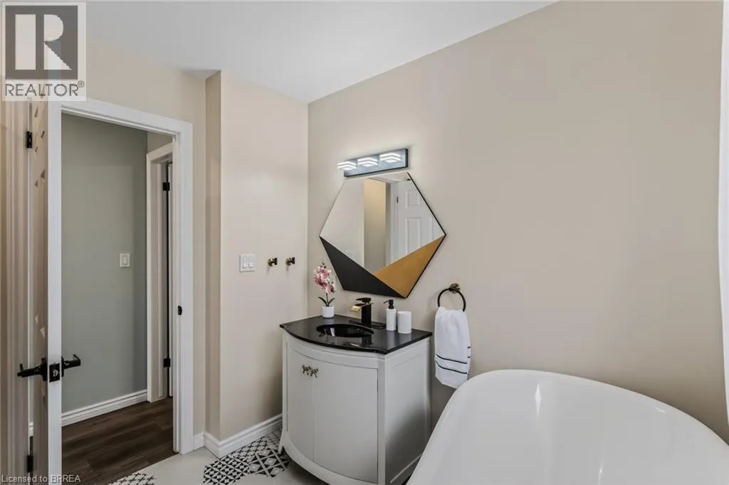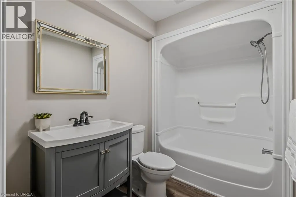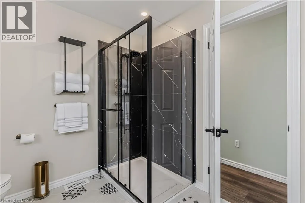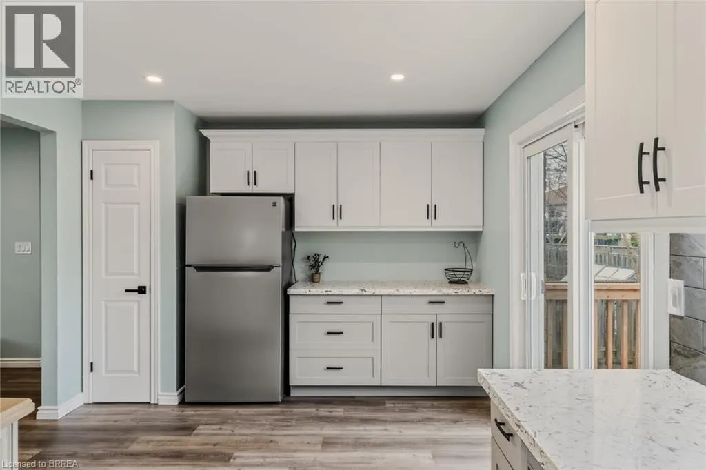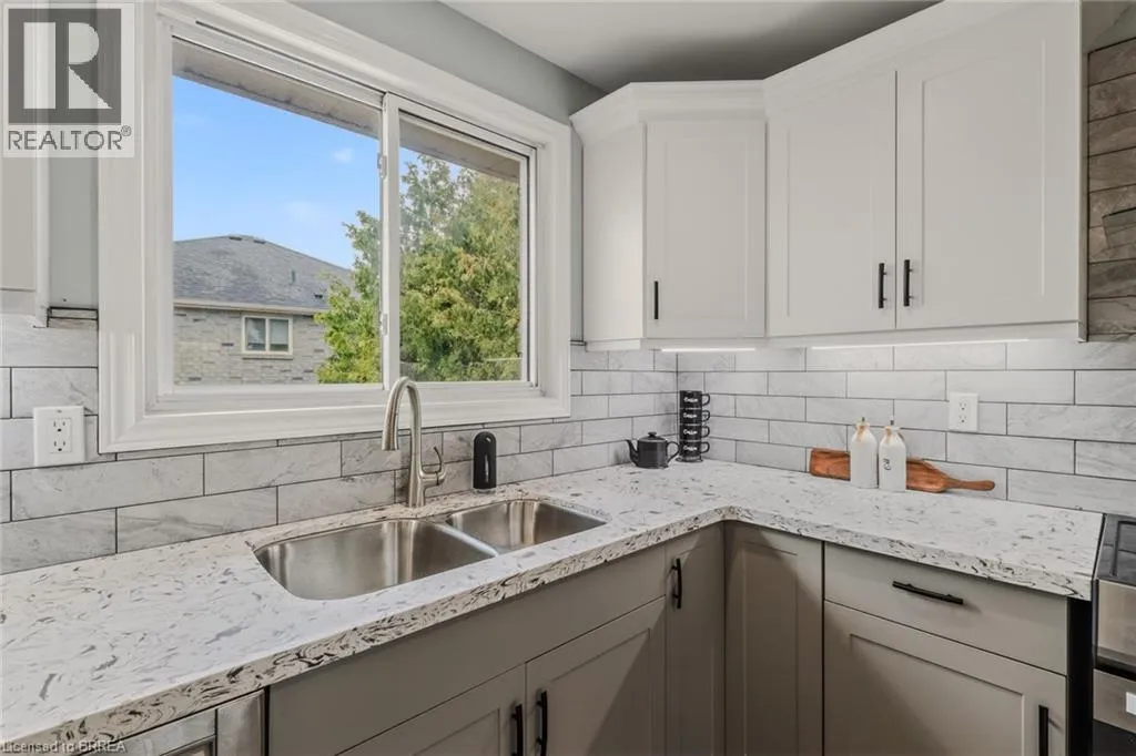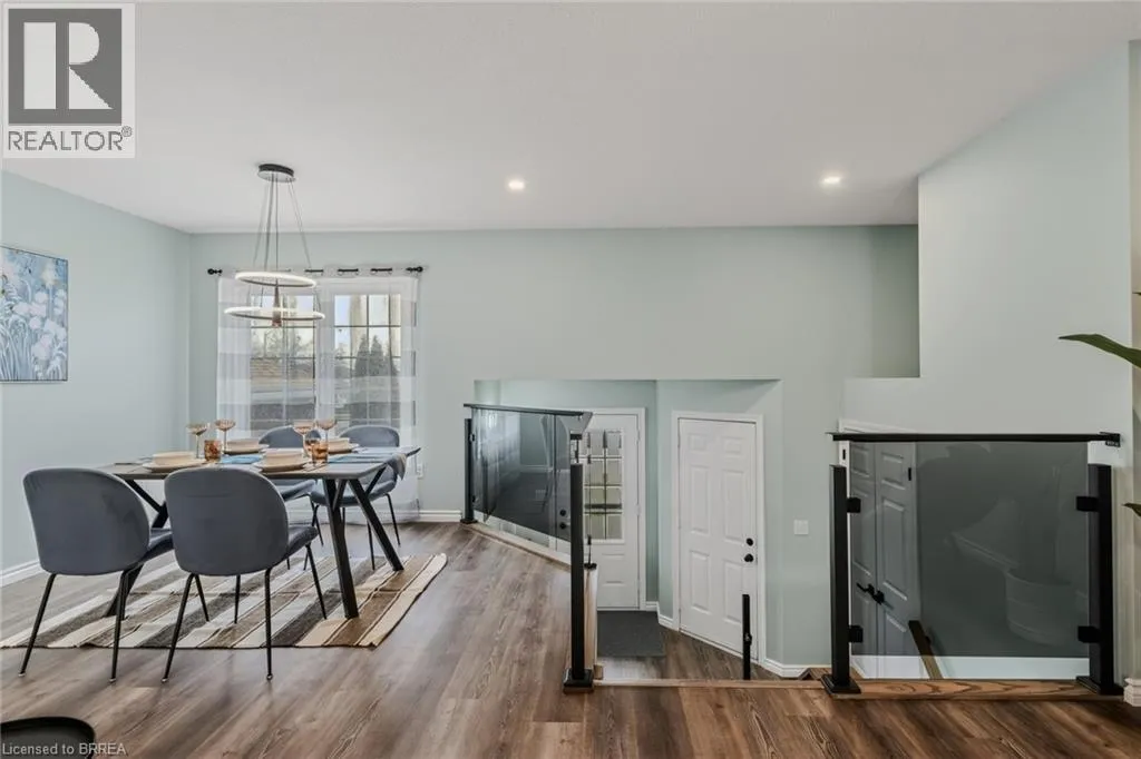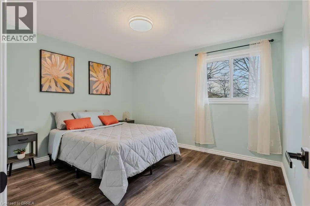 South on Rest Acres Rd, left on Robinson Rd. Fully renovated brick raised bungalow in sought-after West Brant! This move-in ready home offers 2+2 bedrooms, 2 full bathrooms, and a double car attached garage, all set on a fully fenced backyardâperfect for families and entertaining. Step inside to a bright, welcoming foyer that leads into a spacious open-concept living and dining area, ideal for both everyday living and hosting guests. The stunning modern kitchen features a large island, sleek finishes, and a sliding door walkout to the backyard and brand-new deckâperfect for summer gatherings. The main level also includes two well-sized bedrooms and a beautifully updated 4-piece bathroom. The fully finished basement expands your living space with a generous recreation room, two additional bedrooms, another 4-piece bathroom, and a utility room with laundryâoffering flexibility for guests, a home office, or growing families. This home has been thoughtfully updated throughout, including new flooring and carpets, fresh paint from top to bottom, a brand-new kitchen and bathrooms, stylish glass railing on the stairs, and a newly built back deck. Located in a family-friendly neighbourhood close to schools, shopping, trails, and all the amenities Brantford has to offer, this is a fantastic opportunity you donât want to miss. Some images include virtual staging. (id:27476)