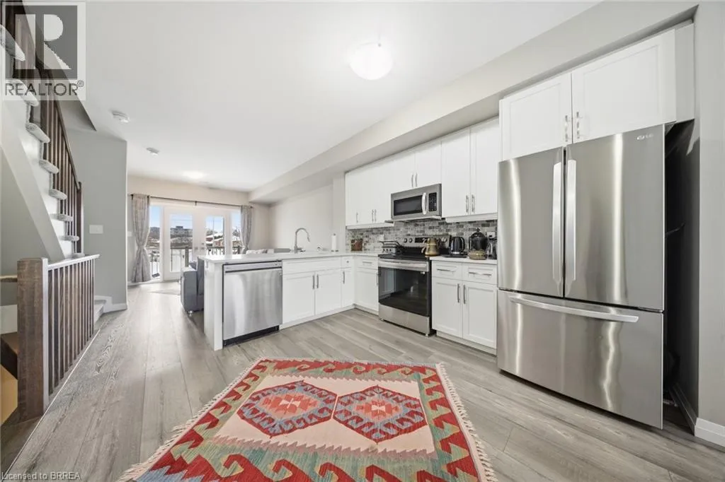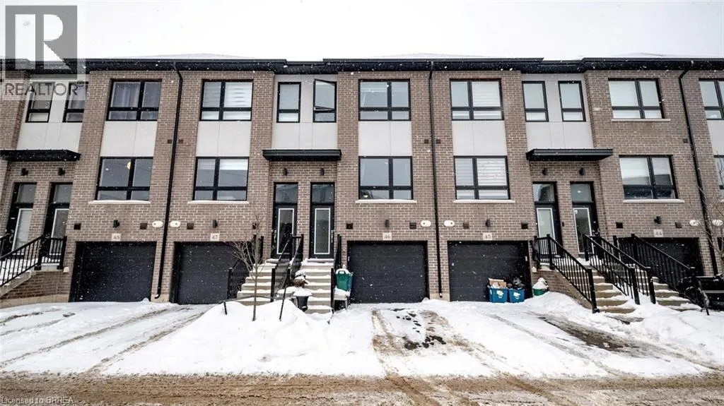 GARDEN AVENUE TO GREY STREET Welcome to 720 Grey Street, Unit 46, in beautiful Brantford. This modern and well-maintained townhouse offers 3 generous bedrooms and 3 bathrooms, providing plenty of space for growing families or professionals alike. The bright, open-concept main floor features a functional layout ideal for everyday living and entertaining, with ample natural light throughout. Enjoy the convenience of an attached garage and a rare walk-out basement, offering additional living space, storage, or future finishing potential. Located in a highly desirable and family-friendly community, this home is close to schools, parks, shopping, restaurants, and all essential amenities. With easy access to transit and major routes, this property combines comfort, style, and an excellent locationâan ideal place to call home. (id:27476)