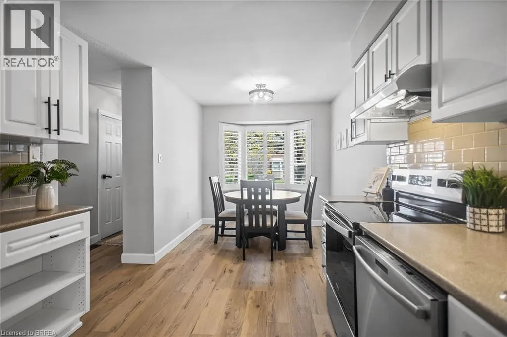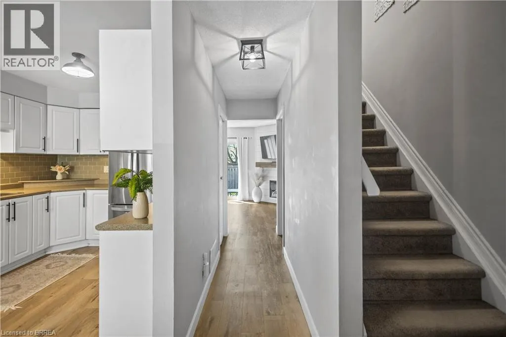 Welcome to this tastefully decorated townhome offering stylish, low-maintenance living. The main floor features brand new flooring, a warm and inviting living room with a cozy fireplace set against a beautiful shiplap accent wall, creating the perfect space to relax or entertain. The eat-in kitchen offers ample cupboard space and a functional layout for everyday living. This two-storey home features 3 spacious bedrooms, 2 bathrooms and a fully finished basement with plenty of storage.Patio doors lead to a private deck, ideal for outdoor enjoyment. Conveniently located close to schools, shopping, transit, and highway access, this home truly has it all. (id:27476)