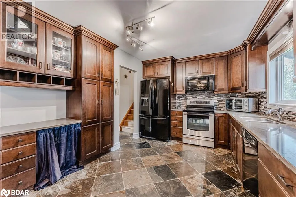 Concession Rd 7/Side Rd 20/Bayshore Dr/Sandlewood Trail SIDESPLIT ON NEARLY HALF AN ACRE WITH A BACKYARD BUILT FOR MEMORIES IN COVETED BAYSHORE VILLAGE! Set on a 119 x 200 ft lot in the coveted lakeside community of Bayshore Village, this sidesplit offers nearly half an acre of mature, landscaped property with an irrigation system, a two-tier deck with a hardtop gazebo, and a stone fire pit area designed for outdoor living at its best. Fill up your social calendar with the Bayshore Community Association optional membership, granting access to incredible amenities including a pool, three marinas, a golf course, pickleball and tennis courts, an eco park and more, all while enjoying walking distance to waterfront parks and beaches. Everyday conveniences are just 10 minutes away in Brechin, with Orillia only 20 minutes for additional shopping, dining and entertainment, and quick access to Hwy 11 nearby. The attached two-car garage is equipped with an automatic garage door opener and an EV charger, while the private double-wide driveway provides parking for up to six vehicles. The inviting kitchen features rich espresso cabinetry, a tile backsplash and slate tile flooring, flowing into a dining area with a walkout to the backyard deck. Hardwood floors carry through the dining and living rooms, with the living room enhanced by a cozy wood stove. The walkout lower level presents a rec room with a second wood stove, a family room, laundry facilities with a walkout to the yard, a full bath, and a finished basement that includes a den and an office. Additional highlights include a primary bedroom with a 3-piece ensuite, two upper bedrooms sharing a 4-piece bath with a jetted tub, custom blinds throughout, upgraded insulation, a water purifier, a water softener, and the convenience of carpet-free living. With a backyard designed for memories and community amenities at your fingertips, this Bayshore Village #HomeToStay is ready for you! (id:27476)