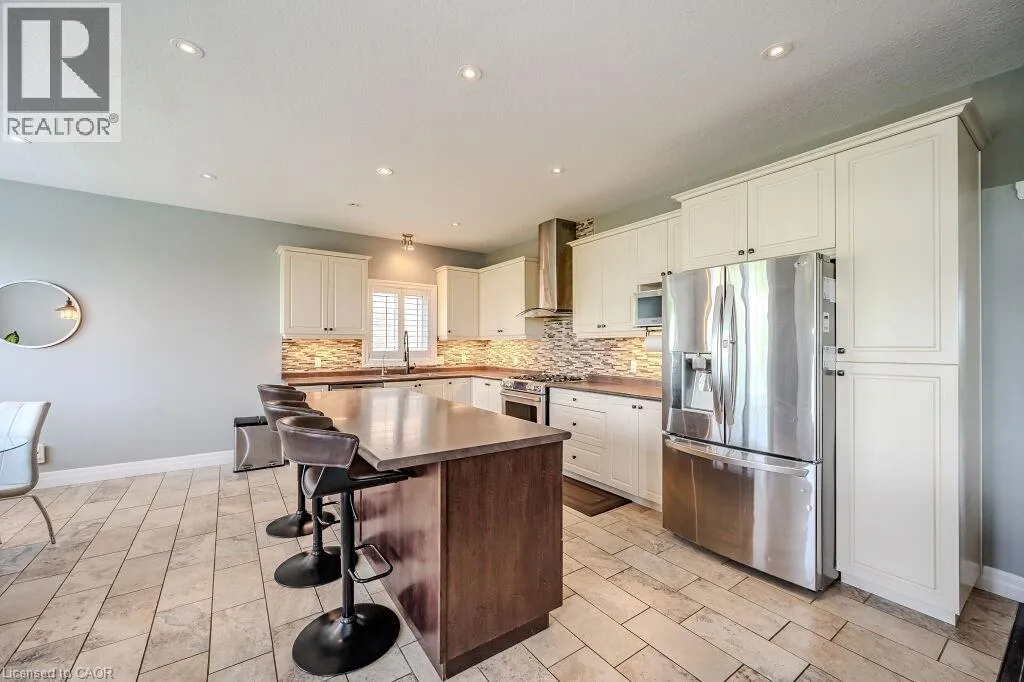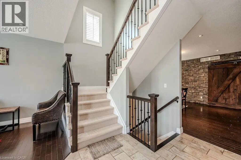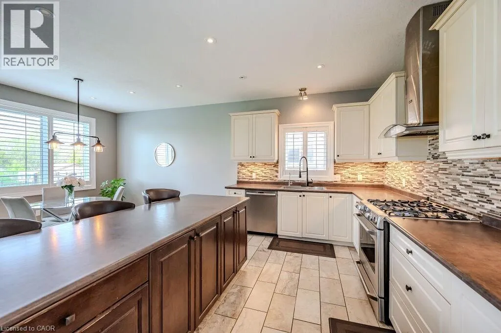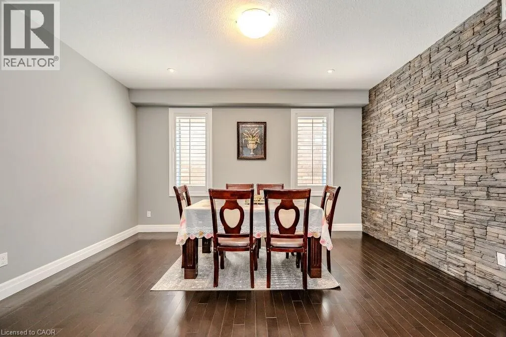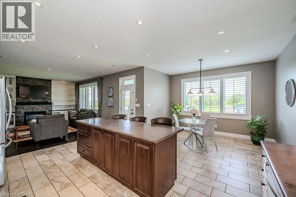 Woolwich Street S to Dolman St Stunning 5-Bedroom Retreat on Rare 267' Deep Lot! Discover your perfect sanctuary in this breathtaking 5-bedroom, 4-bathroom home, nestled on a premium 267-foot deep, fully fenced lot backing onto a serene conservation area for ultimate privacy. This residence radiates curb appeal with its striking exterior and pristine landscaping. Step inside to find luxurious finishes, including a warm gas fireplace, elegant stone walls, soaring ceilings, pot lights, rustic barn wood accents, and a surround sound system in the fully finished basement. The chefâs kitchen dazzles with abundant cabinetry and counter space, seamlessly flowing into the open-concept dining and living areas. A custom mudroom offers stylish storage solutions. The bright lookout basement, illuminated by large windows, is perfect for relaxation or entertaining. Outdoors, a full-width covered deck with a hot tub creates an ideal setting for year-round enjoyment. Located steps from Breslau P.S., Hwy 7, the expressway, and Hwy 401, this home blends tranquility, luxury, and convenience. Donât miss your chance to own this extraordinary forever home! (id:27476)