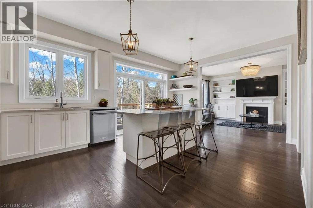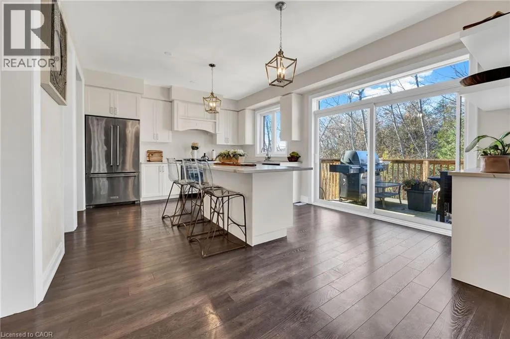 Norwich Rd to Wakefield St Scenic views, flexible living, and thoughtful design come together in this standout Breslau home. Purpose-built for multi-generational living, the 550 sq. ft. in-law suite features its own kitchen, 3-piece bath, living space, and private patioâideal for extended family, long-term guests, or added income potential. Backing onto protected, treed greenspace with access to Grand River trails, this property offers privacy and connection to nature in a quiet, commuter-friendly setting. Inside, the main floor is bright and open, with large windows that frame forest views and hard-surface flooring throughout. The kitchen provides excellent storage and seamless flow to both the dining and living areasâperfect for casual evenings or entertaining. A spacious upper deck invites morning coffee or end-of-day unwinding. Upstairs, the primary bedroom includes a walk-in closet and an ensuite with double sinks, soaker tub, and walk-in shower. Two additional bedrooms and a full bath offer versatility for family life or work-from-home needs. With over 3000 sq. ft. of finished including a fully finished lower level, and direct outdoor access, this is a rare opportunity to live wellâand live surrounded by nature. (id:27476)