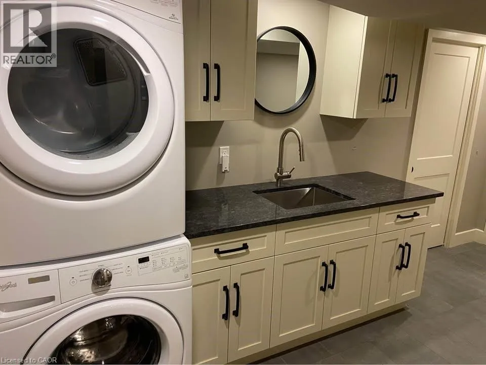 Fountain This luxurious 2-bedroom basement apartment is available for $2,000 + hydro and is ideal for professional long-term tenants. The unit features a spacious open-concept custom kitchen with quartz countertops and island, a bright living room with gas fireplace and TV mount backing, a spa-like bathroom with a large walk-in shower and freestanding tub, and a dedicated laundry room with stacking washer/dryer, custom cabinets, and wash sink. Both bedrooms are generously sized with carpet flooring and built-in closet shelving and rods. Two parking spaces are included. No pets and no smoking. (id:27476)