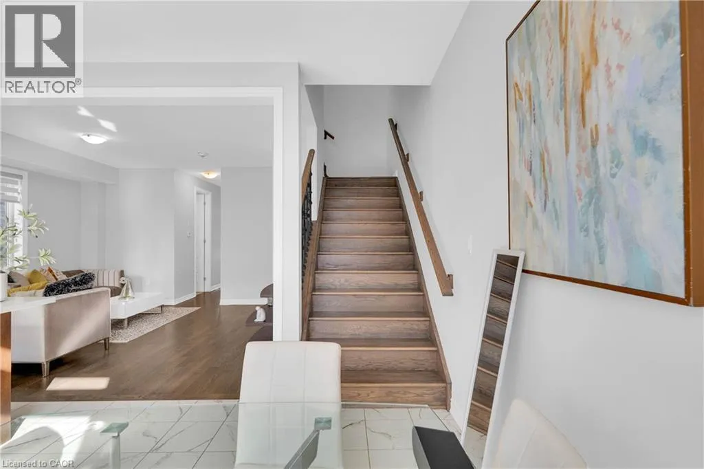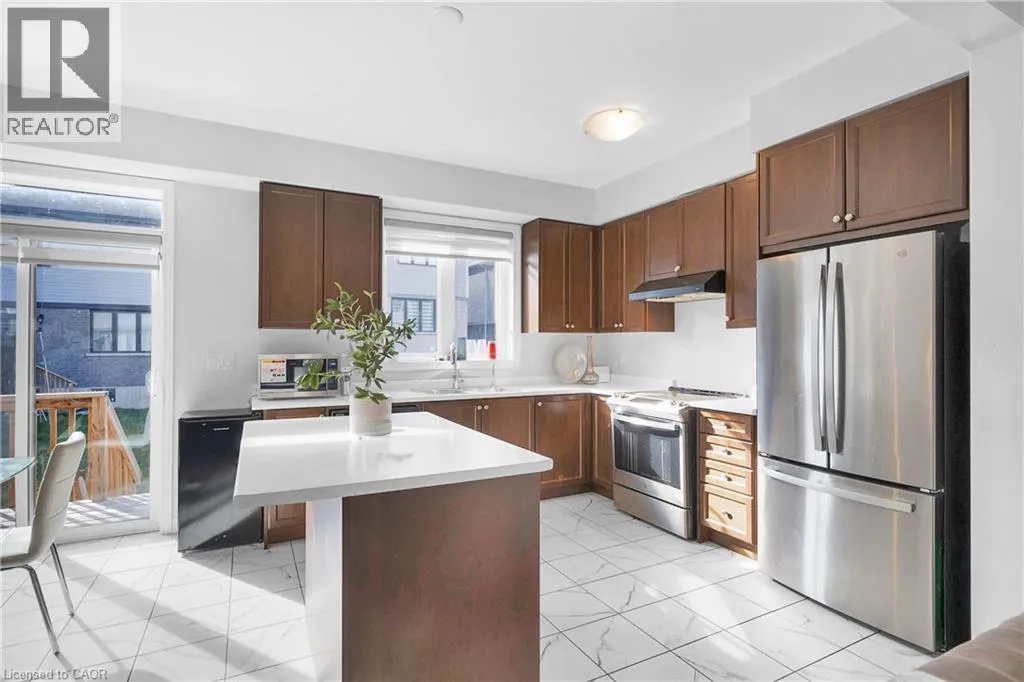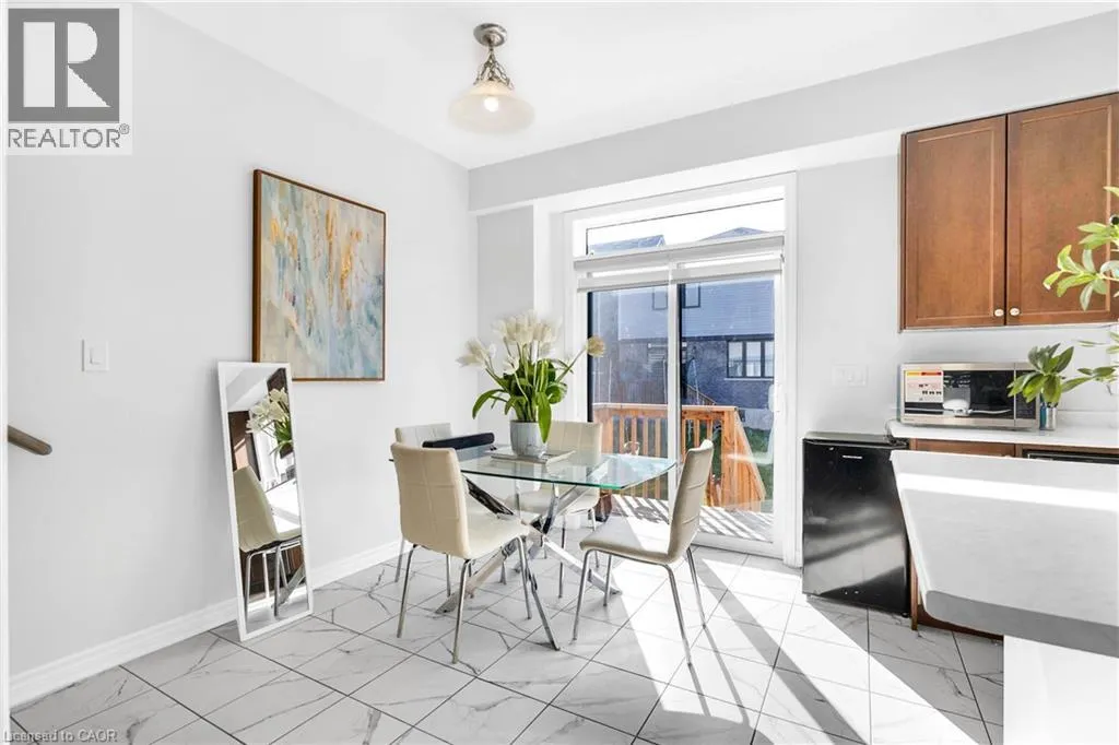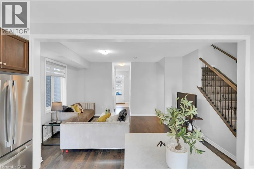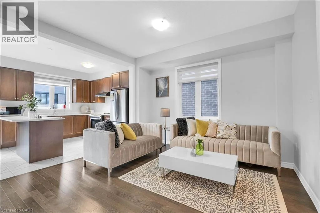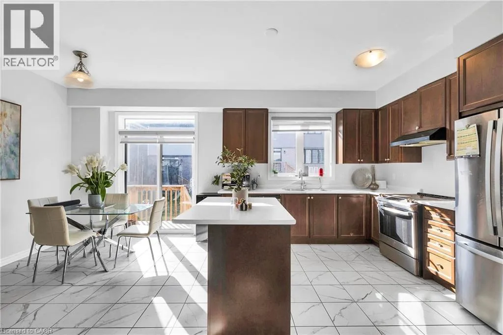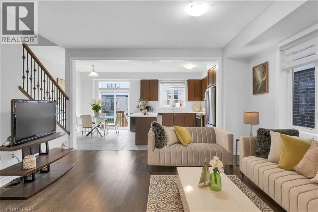 Woolwich St S to Andover Drive to Dolman St Nestled in the beautiful community of Breslau, 406 Dolman Street offers a modern inviting 3-bedroom, 2.5-bath home that blends comfort with contemporary upgrades. This home enjoys a desirable east-facing orientation, offering abundant morning sunlight and a bright, welcoming ambiance throughout the day. Featuring a double-door entry, 9-foot ceilings, and hardwood flooring throughout the main level, the home welcomes you with spaciousness and style. The beautiful kitchen showcases stainless steel appliances, Quartz countertops and overlooks a deep backyard complete with a deck, perfect for relaxing or entertaining. An oak staircase with iron pickets, upgraded washroom vanities, and large interior doors add to the refined feel of this property. Practicality is built in with a deep lot, big closets for ample storage, and parking for two cars on the driveway plus one in the garage. Warm, well-kept, and thoughtfully designed, this is a cozy home ideal for families or anyone seeking a comfortable modern living space. (id:27476)