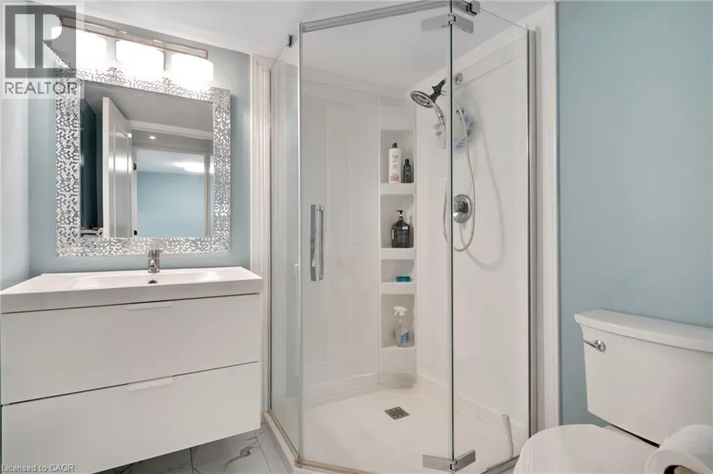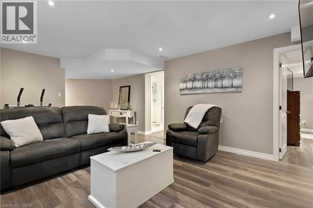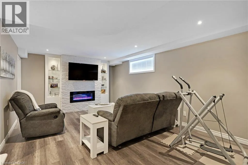 Cross street is Fountain St. N. and Townsend Dr. Impeccable, exquisitely designed and decorated is the only way to describe this amazing executive condo. Professionally landscaped and nestled in the quiet village of Breslau. This stunning home offers prime access as itâs situated within minutes of the 401, Guelph, Kitchener, and Cambridge. Enjoy the tranquillity of the neighbourhood walking trails and proximity to local parks and recreation center. This highly sought-after Nantucket end unit is the largest in its class at 1790 sq.ft finished with loads of updates. The gorgeous open concept kitchen and great room offer plenty of natural light, which leads to the covered deck, making year-round barbequing a breeze! Full double car garage with double drive-way allows for 4 car parking. The large master bedroom features a large walk-in closet and a beautiful ensuite, along with a second bedroom, which also features a walk-in closet. The cozy upstairs loft creates an extra space to hold an office or a second family room. Downstairs is sure to please with the newly finished recroom with a cozy fireplace, a spacious additional room, a bright, big open laundry room and a 3-piece bathroom. This unit is stunning with low condo fees on exceptionally maintained property and will be sure not to last long! (id:27476)